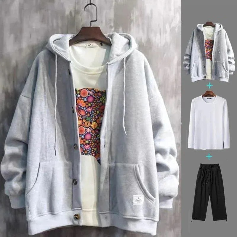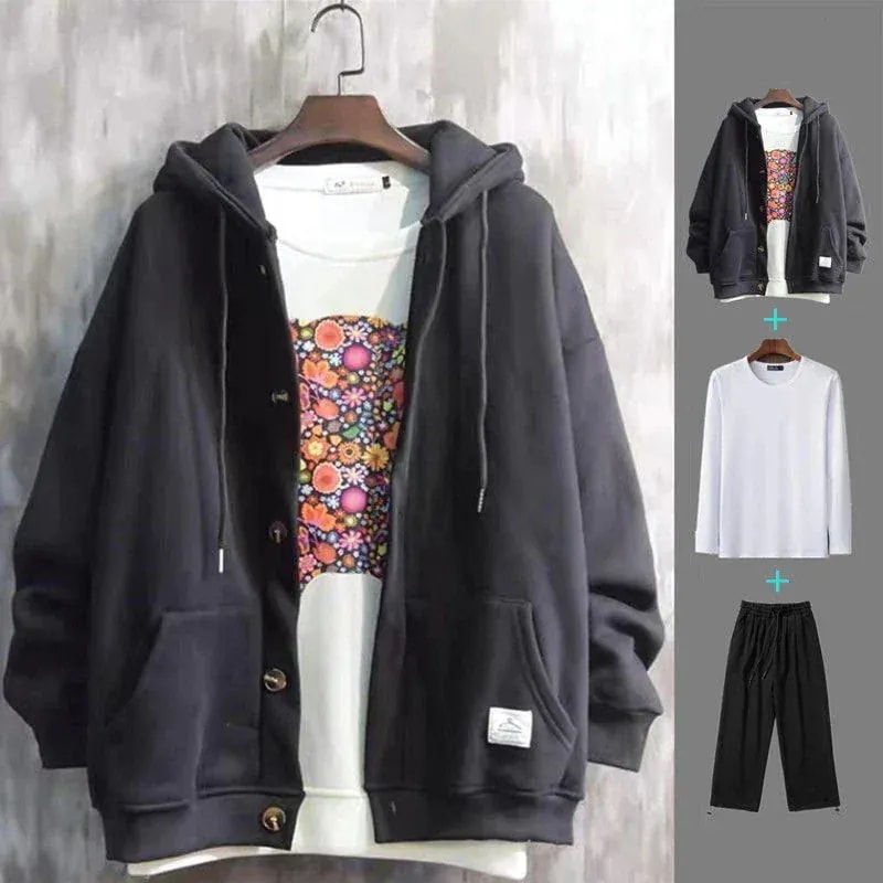 秋冬 メンズ カジュアル 裹起毛 パーカーコート+長袖Tシャツ+スウェットパンツ 上下3点セット ジャージ 大きいサイズセットアップ