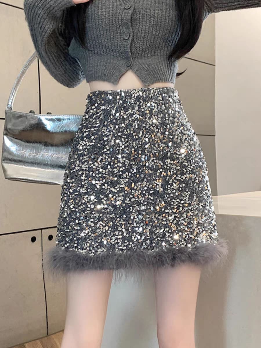 FREEL2色韓国スパンコールスカート ミニスカート