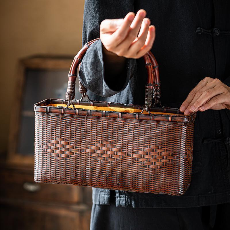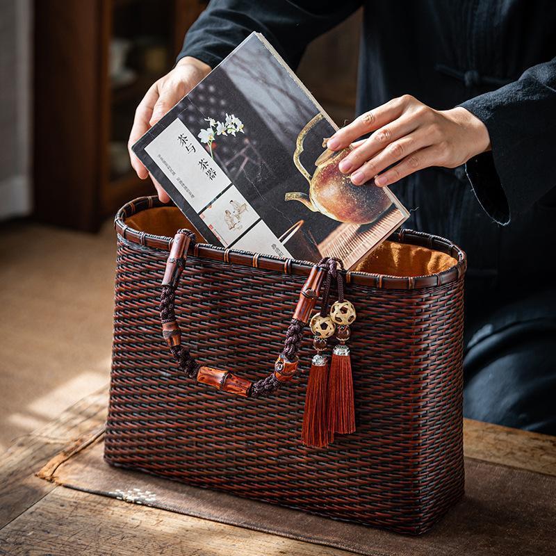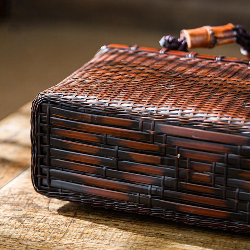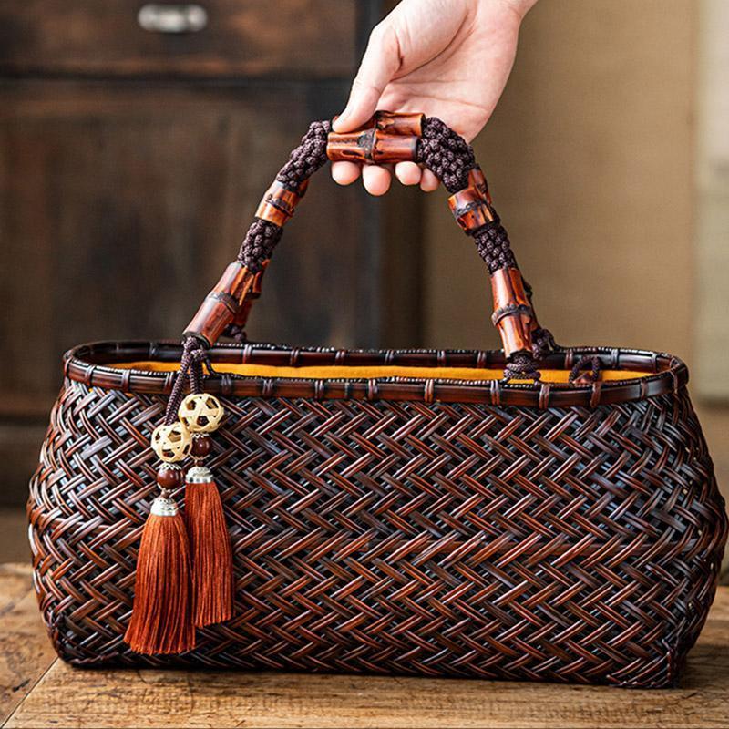 バッグ 職人手作り 自然竹の編み上げ お買物かご かごバック 籐かご 小物入れ 漆器 工芸品 茶道具 丈夫 大容量 かごバッグ