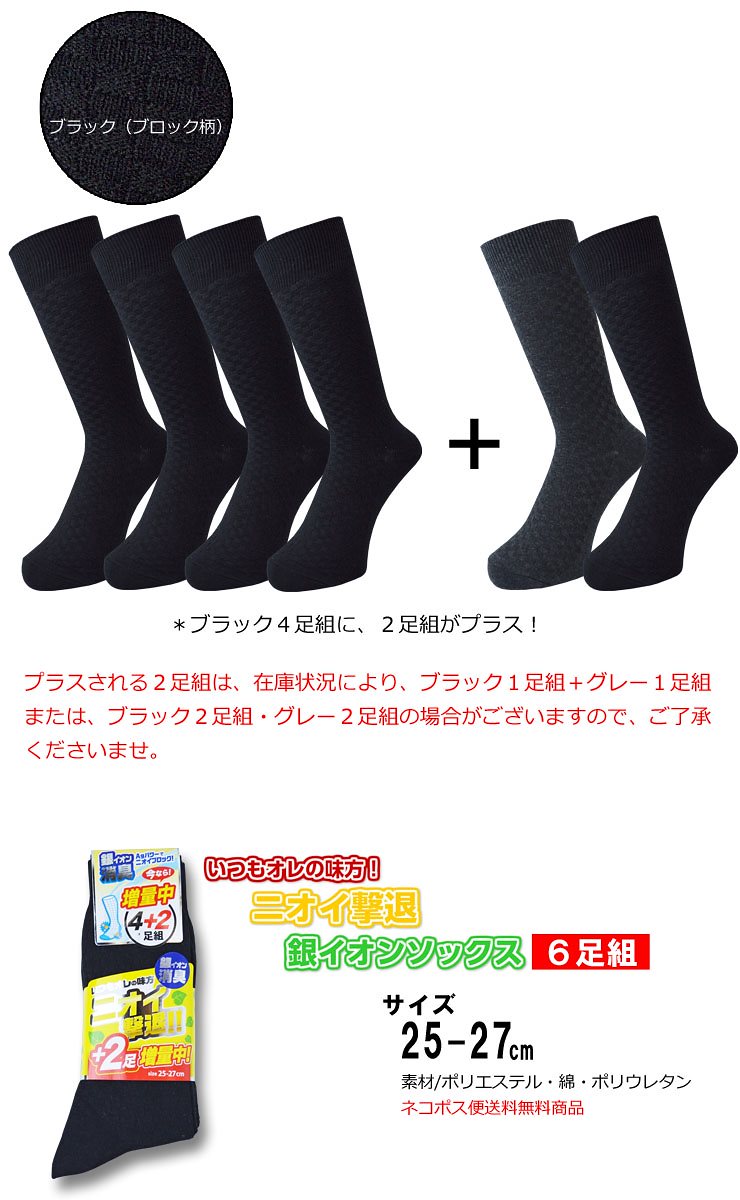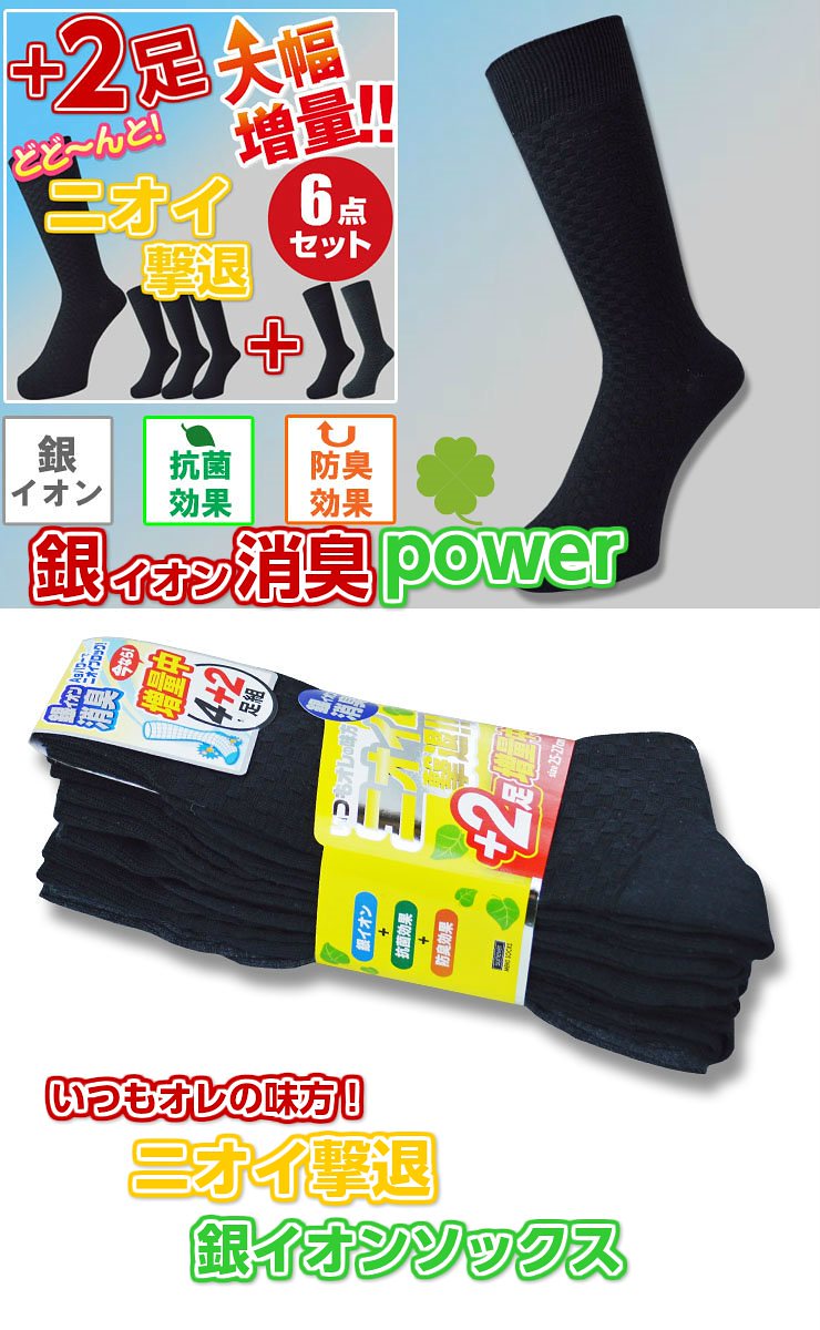 ソックス メンズ ニオイ撃退 クルーソックス6足組 消臭靴下 メンズ ソックス セット ビジネスソックス メンズ 黒 靴下 メンズ ビジネス 消臭 抗菌 防臭 銀イオン (