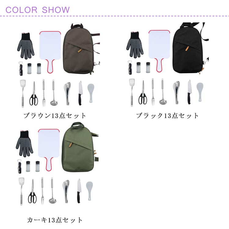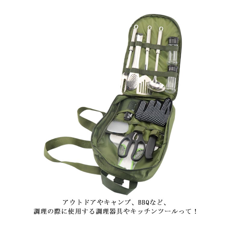 バーベキュー クッキングセット 13点セット 収納ポーチ付き キッチンツール クッキングツール キャンプ 調理器具 キャンプ アウトドア グランピング カトラリー レジャー バーベキュー お玉 フライ