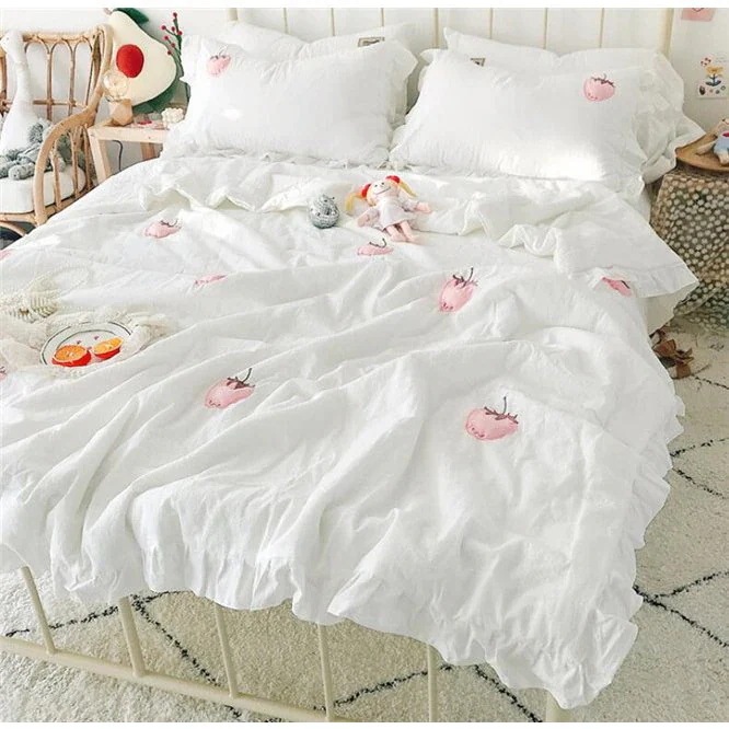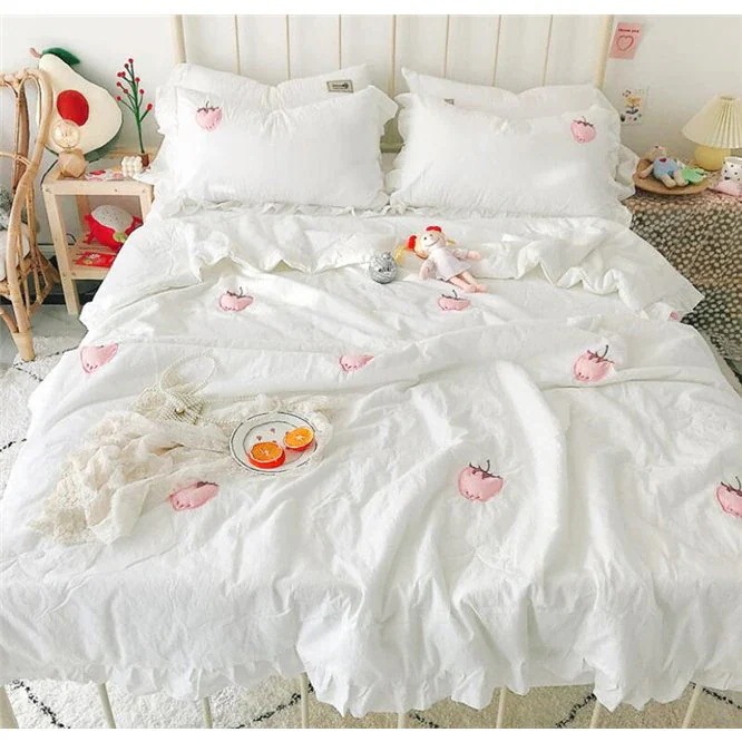 布団掛け布団4点セット刺繍フリルマットレス布団寝具綿涼しい感じエダケ 布団セット
