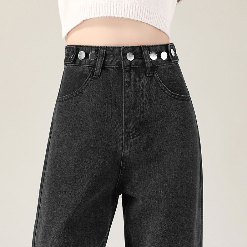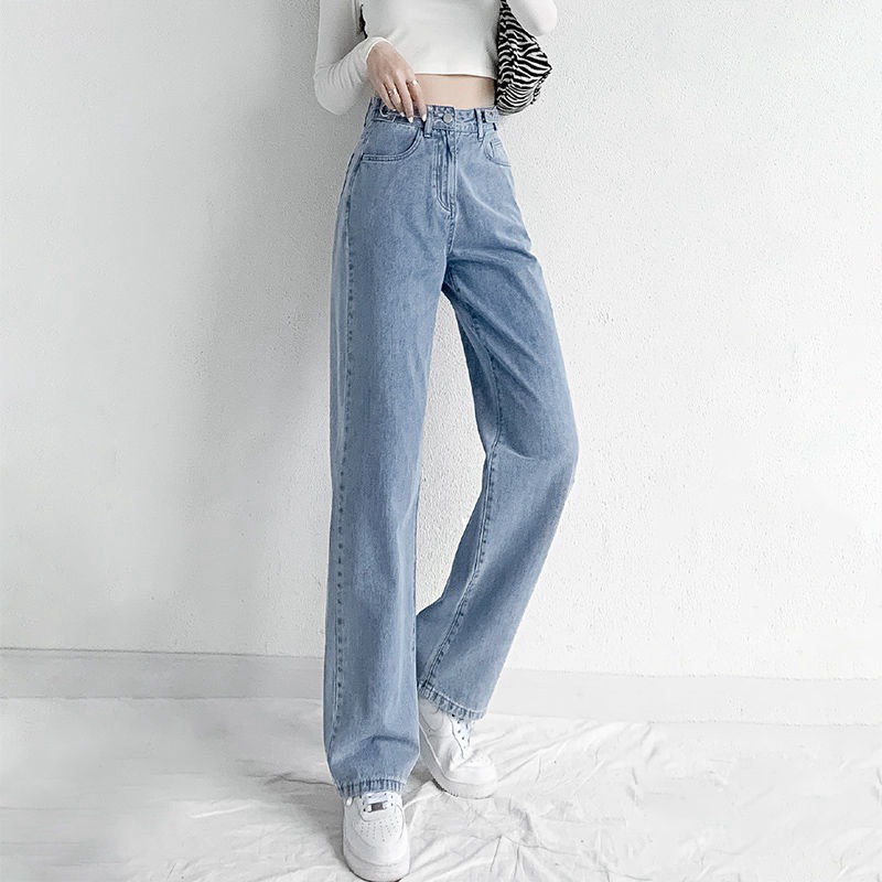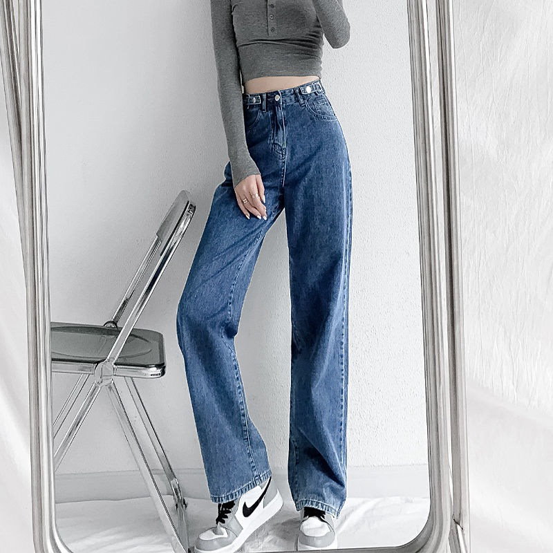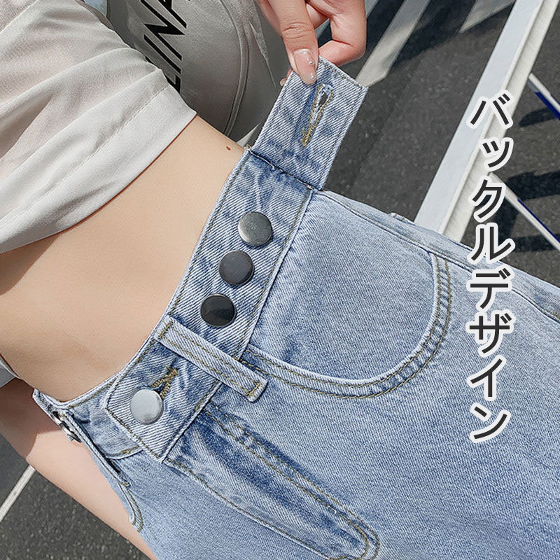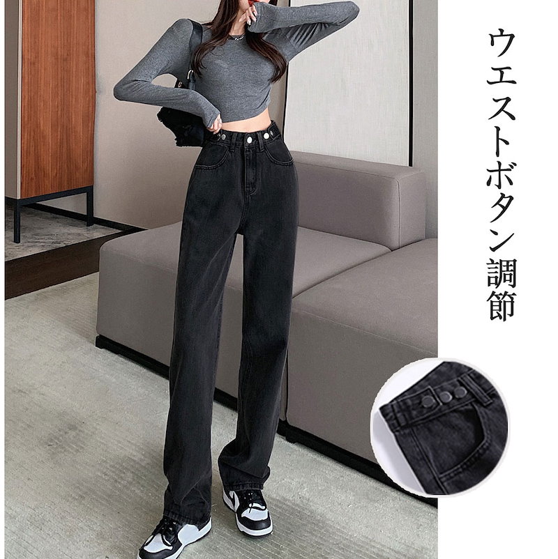 3枚200OFF 冷感ジーンズ ウエスト調整可で華奢見え-ハイウエストストレートデニムパンツ-ジーンズ-デニム-レディース 春 夏 韓国ファッション 四節適用着痩せ脚長効果