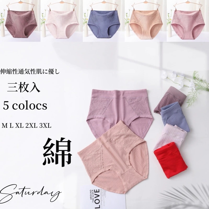 3枚入ショーツレディースコットン大きいサイズ綿パン無地パンツハイウエスト深ばき下着桃尻尻伸縮性通気性コームドコットン抗菌MLXLXXLXXLショーツ