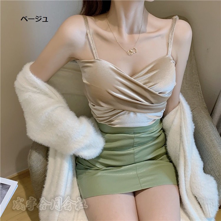 ベロア キャミソール カップ付き レディース ノースリーブ Tシャツ タンクトップ 無地 コーデ イ 母の日 シャツ ブラウス
