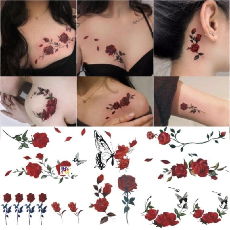 2024新入荷 タトゥーシール ジャグアタトゥーシール 2週間持続 英文字 ハート 長持ち 防水 刺青シール 草本果汁 和柄 花 フェイス 韓国 06