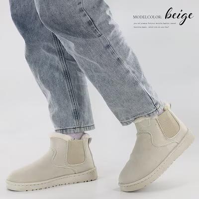 秋冬厚底ショートブーツレディース裏起毛ブーツショートブーツサイドゴアスリッポン暖かいボアカジュアルスノーブーツブーツサイドゴア人気防寒
