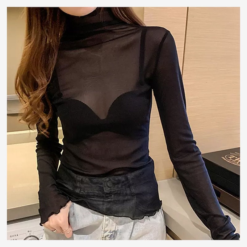 透け感がモテの秘訣 シアーインナー シアー トップス シアートップス シースルー 韓国ファッション ハイネック インナー ハイネック シースルー カットソー タートルネック レディース