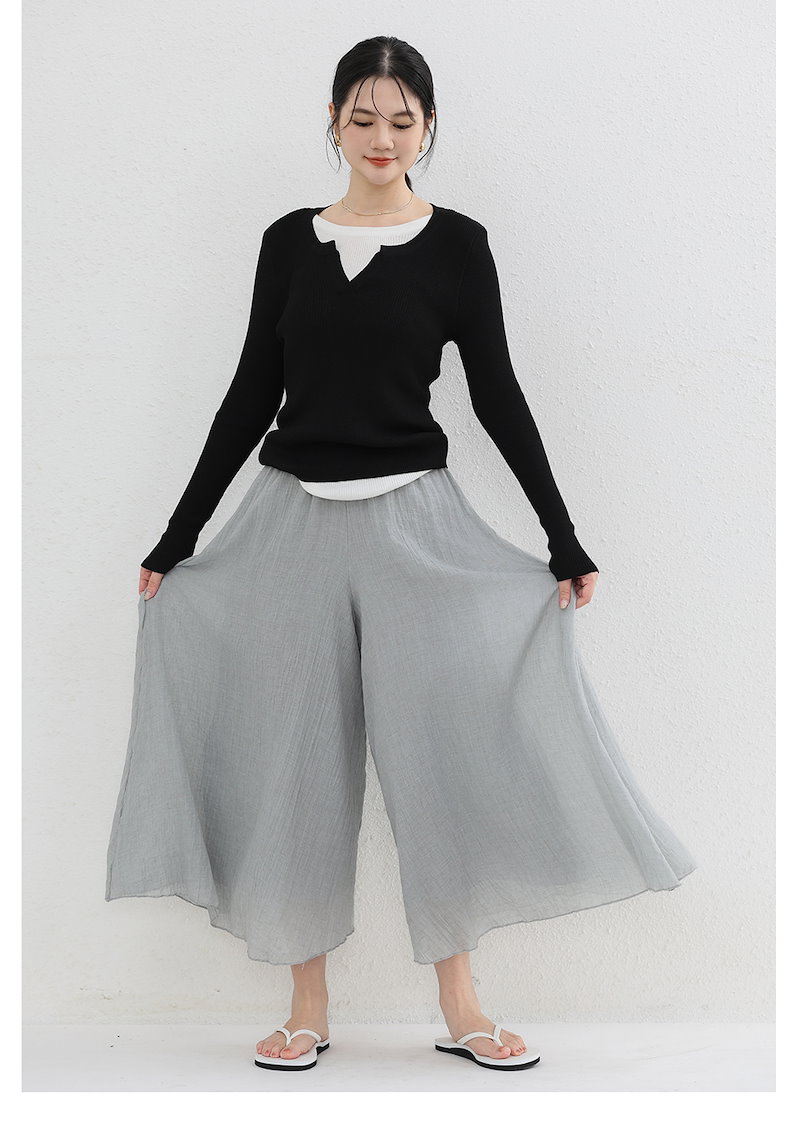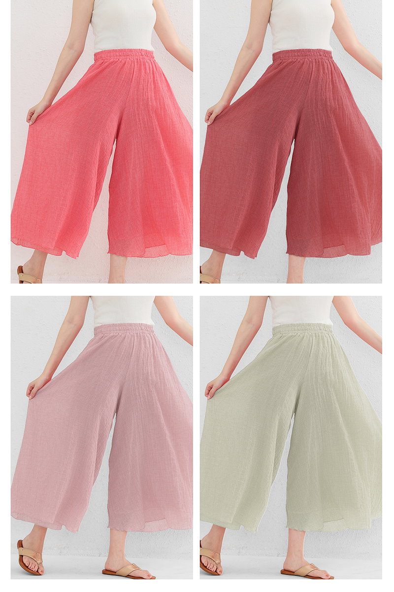 累計20,000着以上販売 魔法の麻混ワイドパンツ 空気のような履き心地 全16色 ロングパンツ スカート 清涼感 リネンパンツ リボン ストレッチリネン