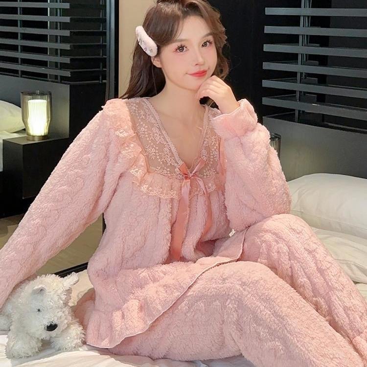 人気 モコモコ パジャマ 柔らかい ルームウェアパジャマホームウェア セット レディース 秋冬 両面フリース パジャマ