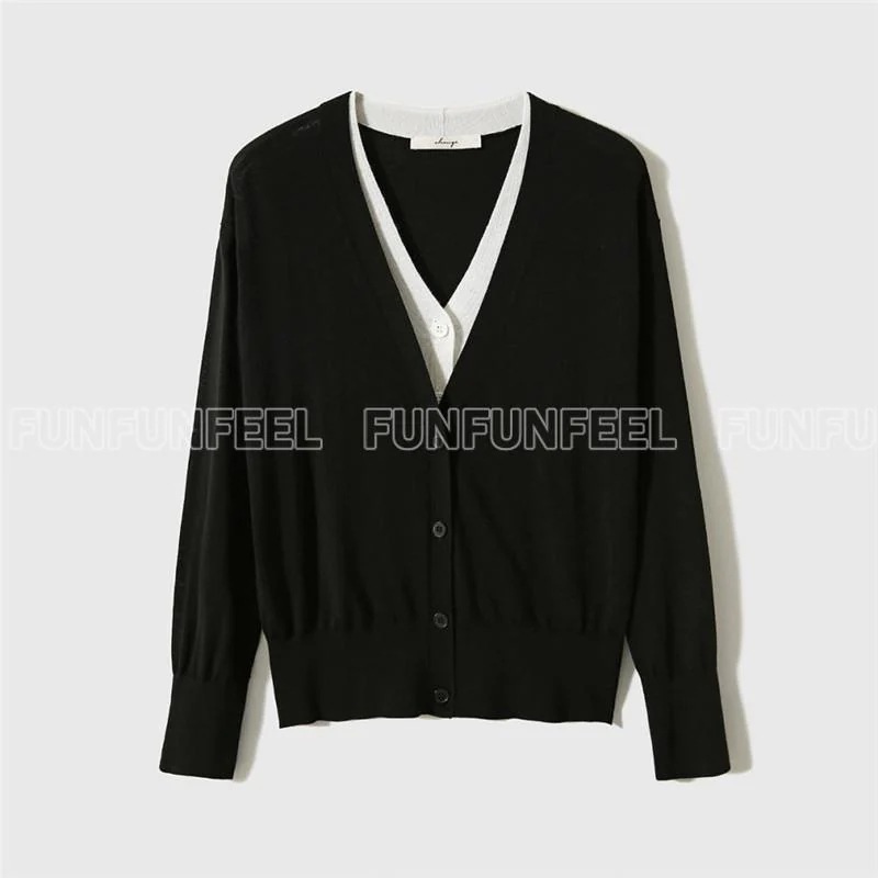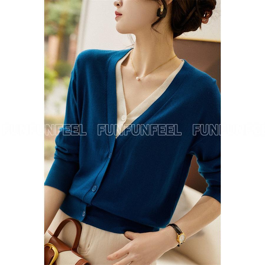 カーディガン レディース 春コーデ ニットカーディガン 長袖 春服 ニットセーター vネック フェイクレイヤード 重ね風 秋冬 春 ショート丈 開襟