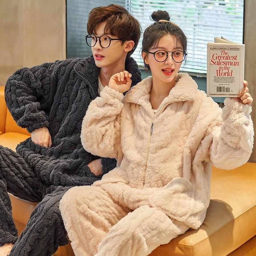 パジャマ カップルペアルック ルームウェア フランネル 冬 ペアパジャマ長袖 パジャマペアルックお揃 パジャマ