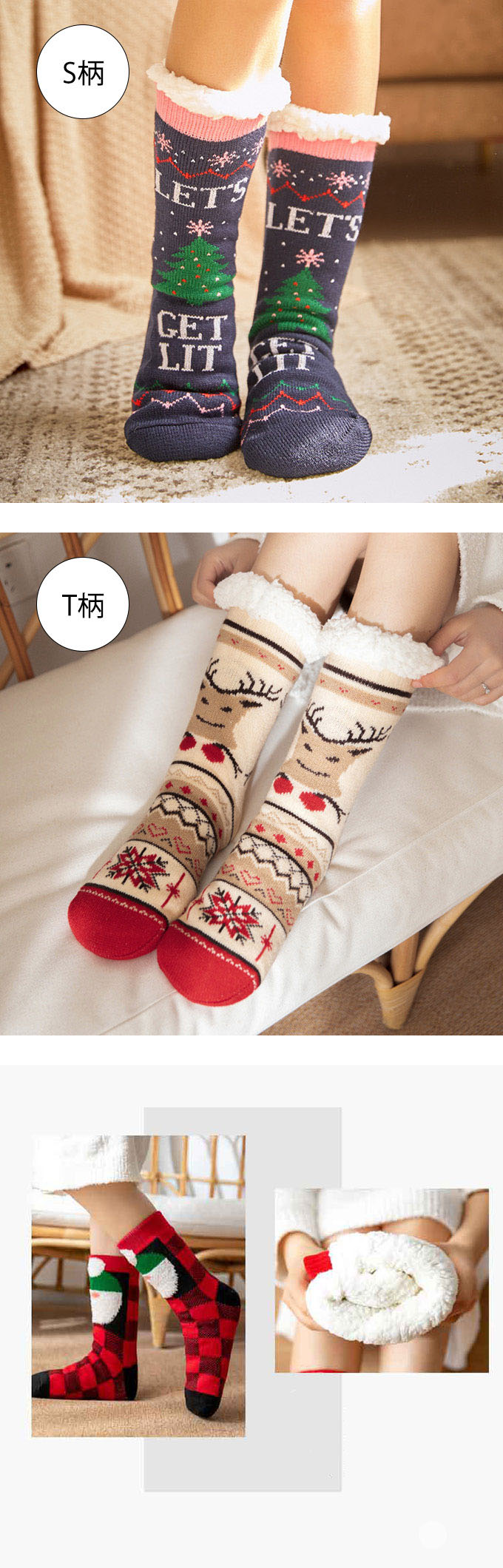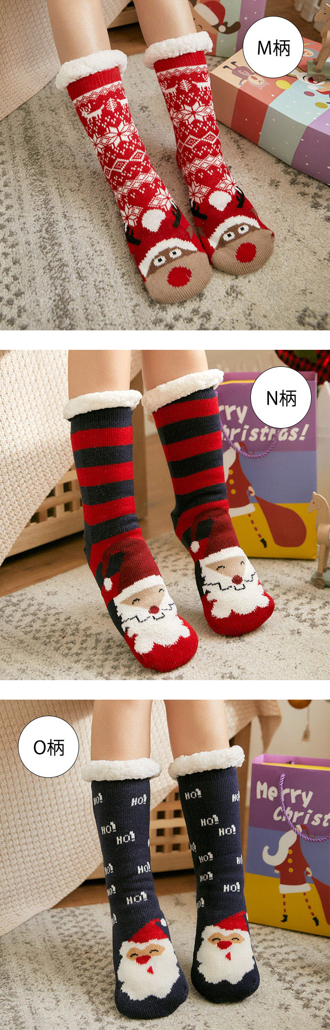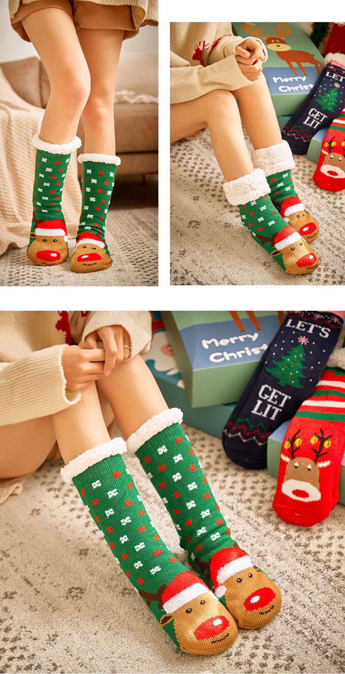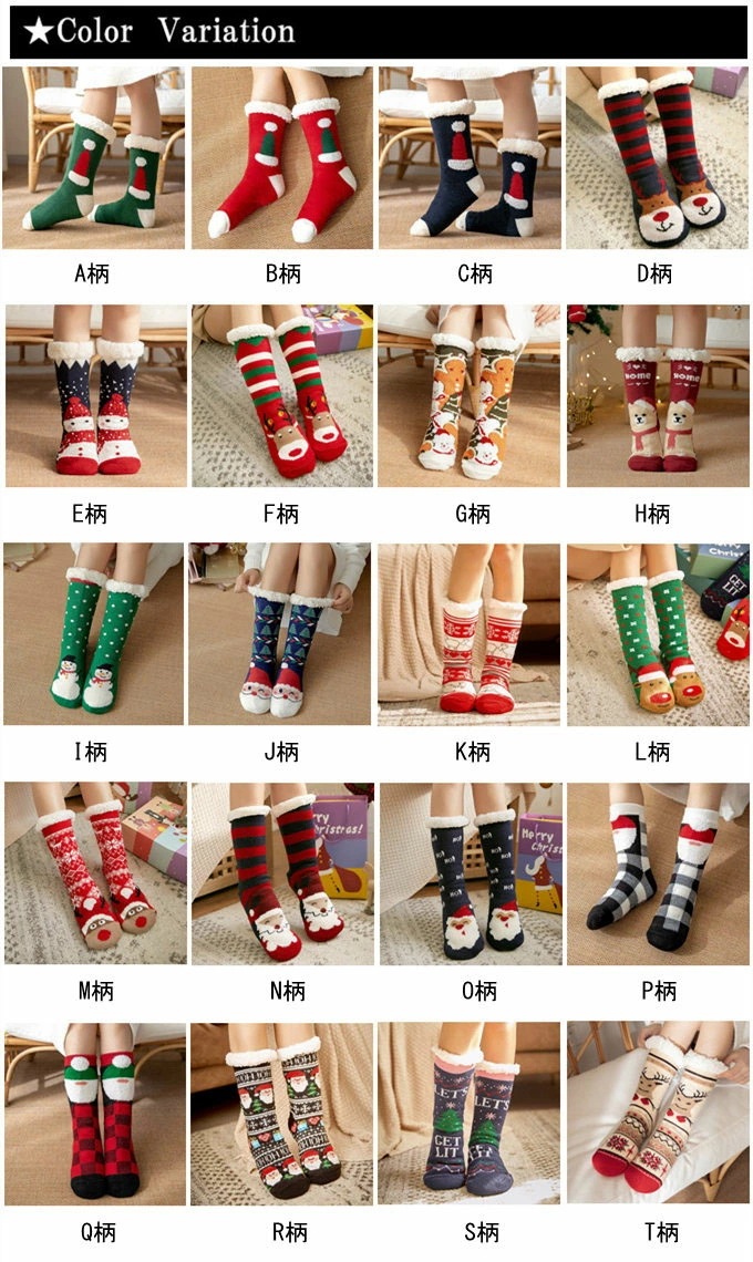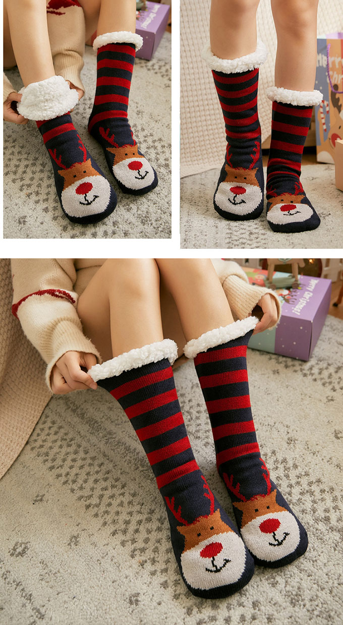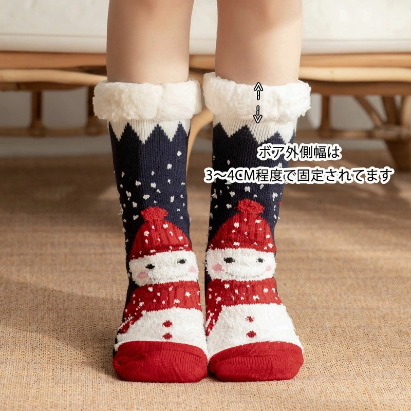 クリスマス 極厚 裏ボア ルームシューズ 冬 あったか 靴下 ソックス クリスマスプレゼント入れ 防寒 ルームスリッパ 室内履き 滑らない 滑り止め 毛糸 裏フリース もこもこ ふわふわ
