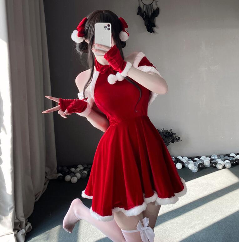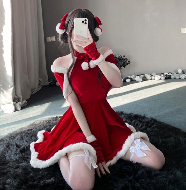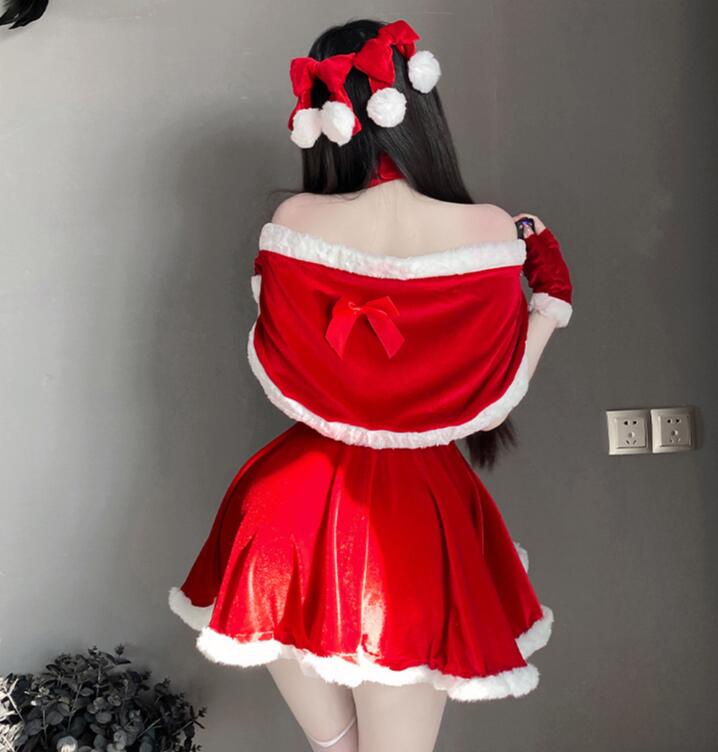 サンタ コスプレ セクシー サンタ ポンチョ セクシー レディース コスチューム ポンチョ マント リボン ワンピース サンタ Aラインワンピース 4点セット 可愛い クリスマス 体型カバー かわいい