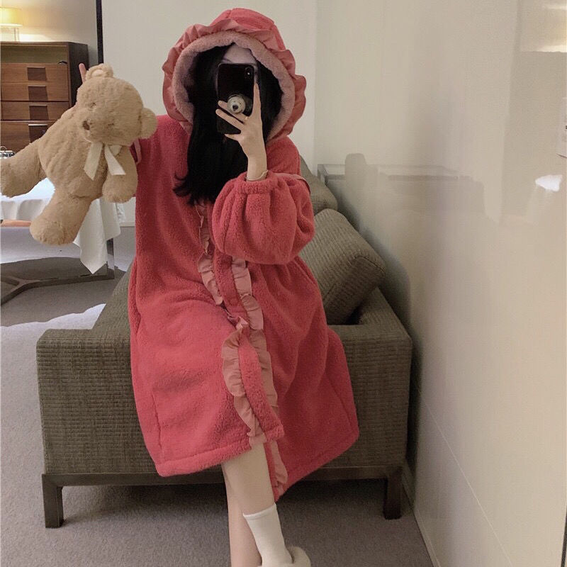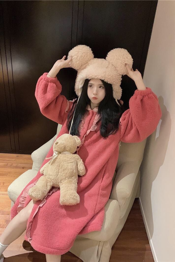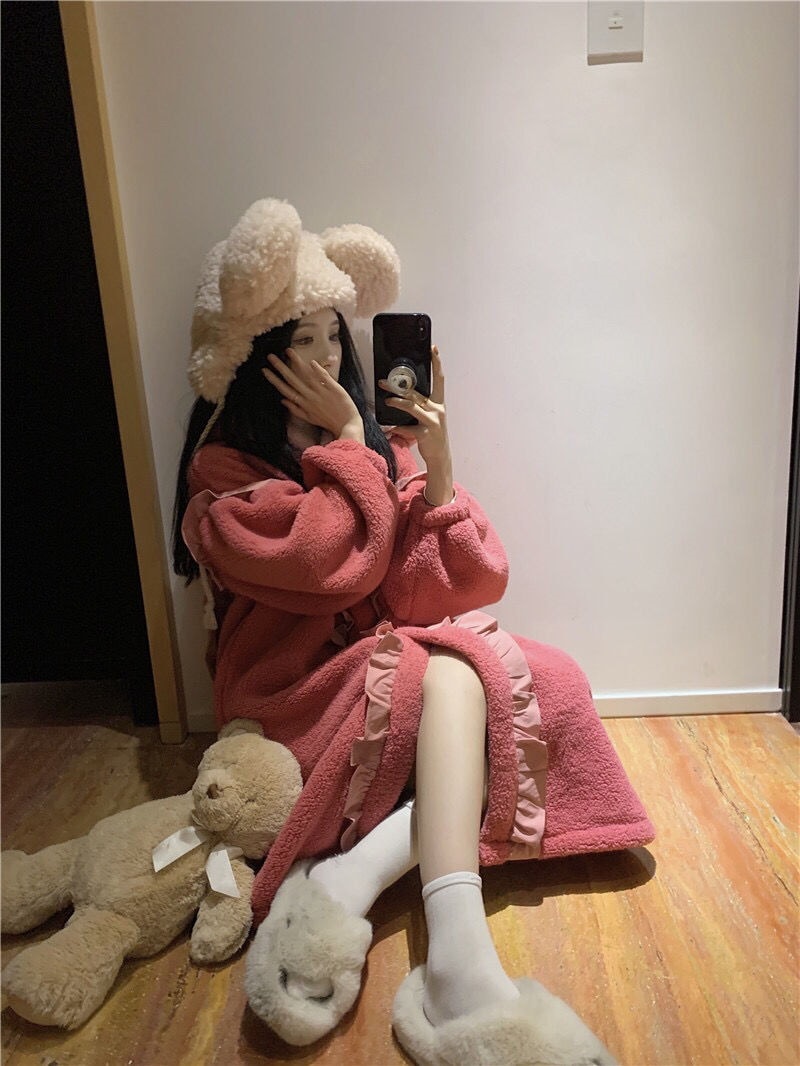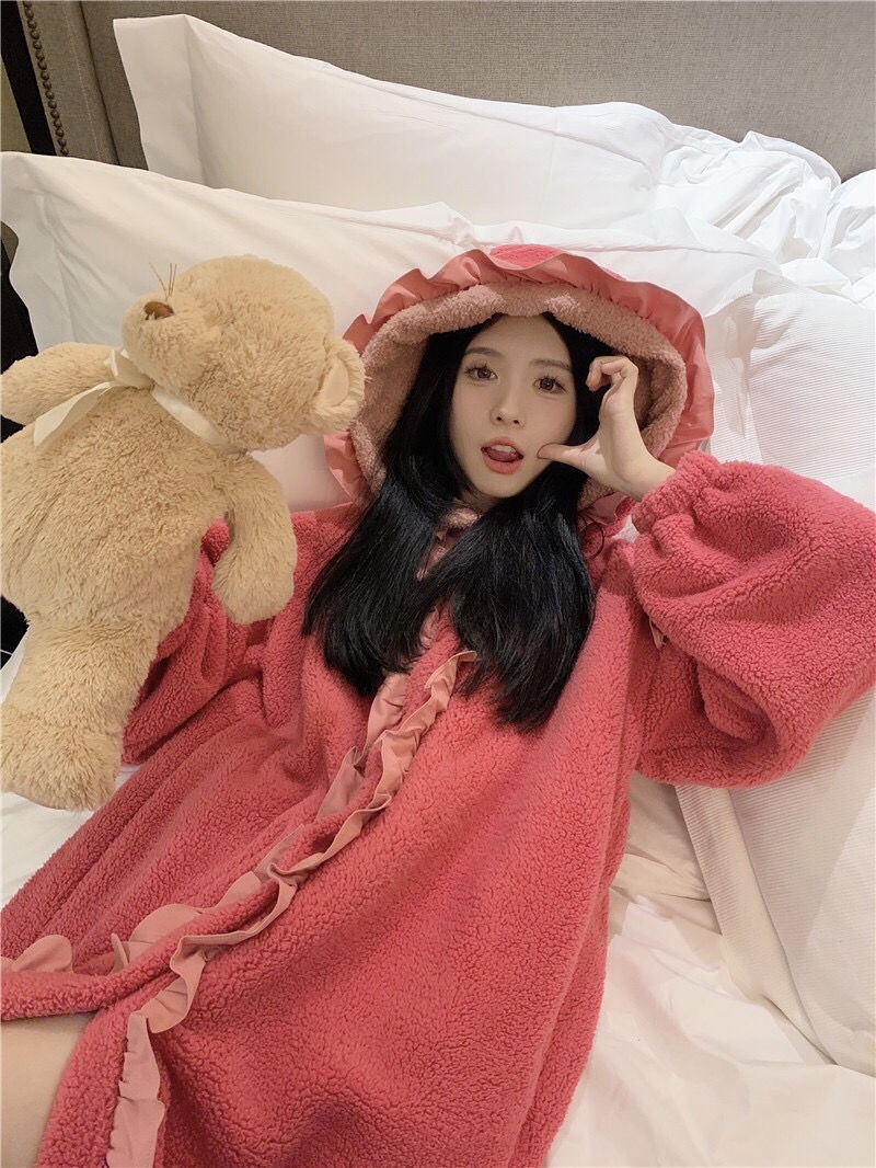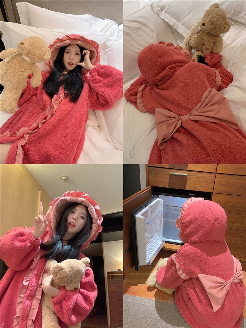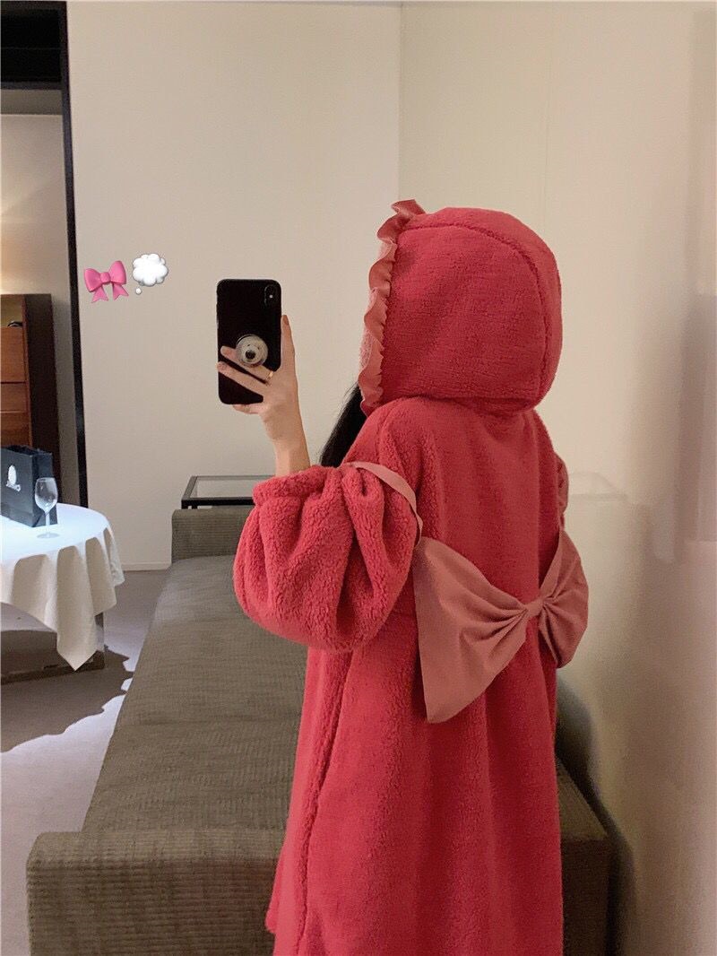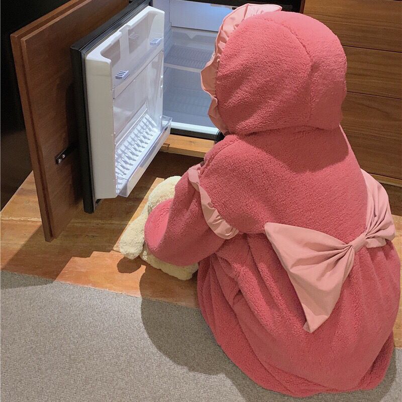 着ぐるみパジャマ 珊瑚絨毯の大きなリボンがかわいい色合わせスリーパー2024秋冬新作ゆったり木耳もとの甘い部屋着 パジャマ メガ割 パジャマ