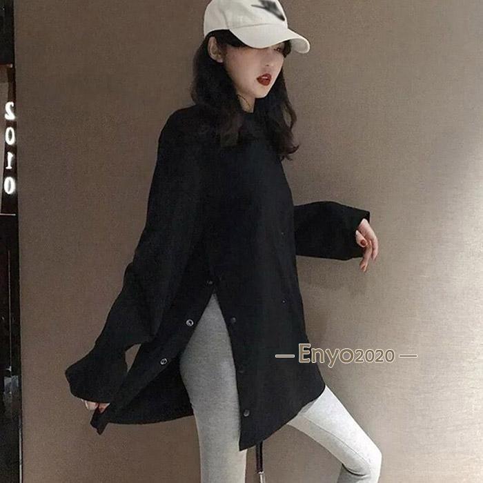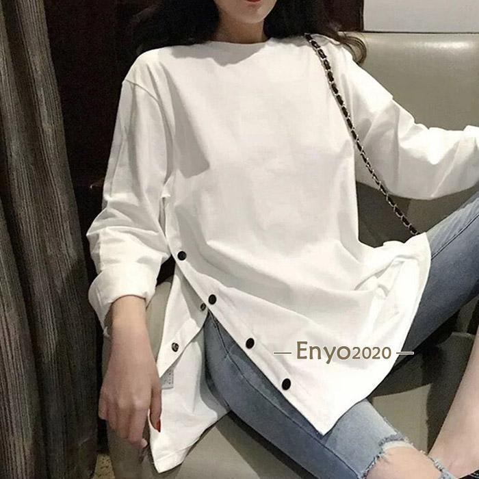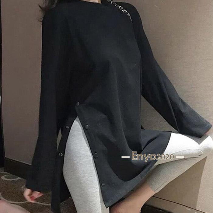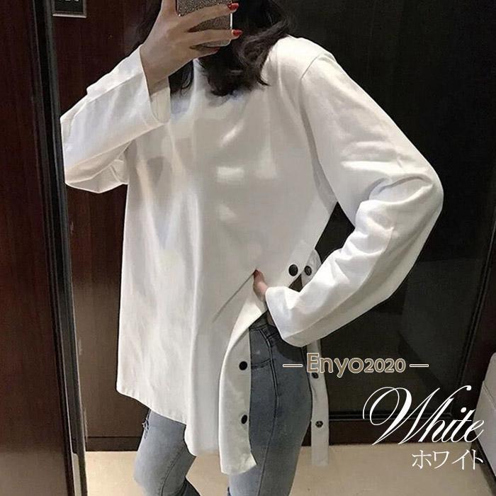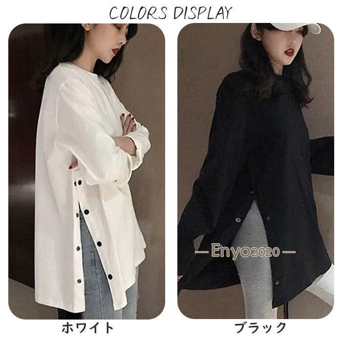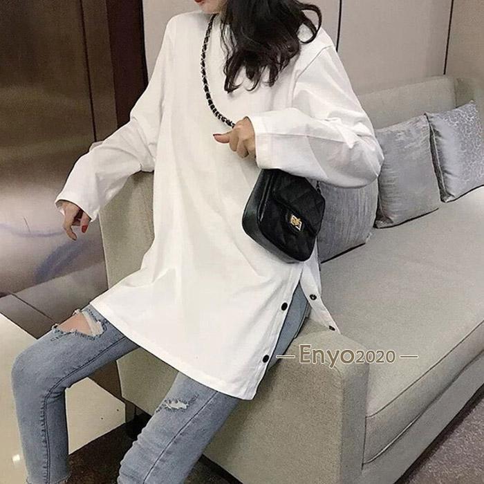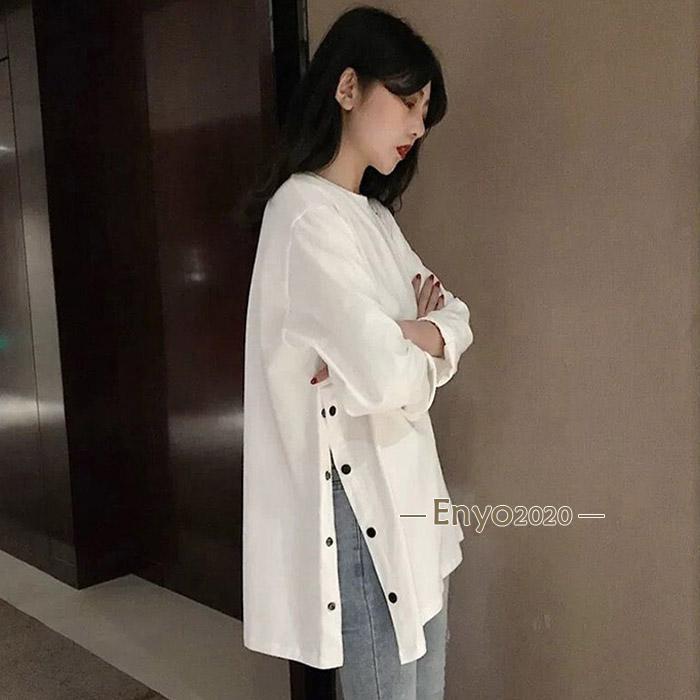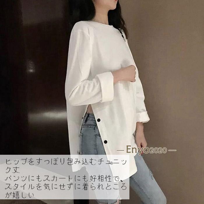 レディース 長袖ロング丈 Tシャツ サイドスリット カットソー トップス 長袖シャツ 万能Tシャツ ティーシャツ クルーネック チュニック丈 無地 カジュアル