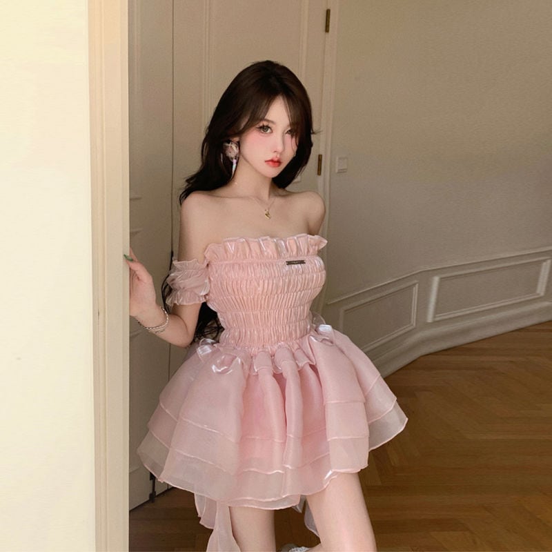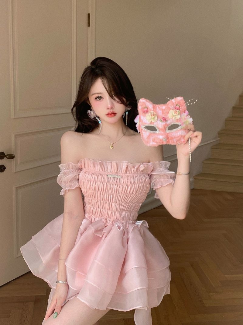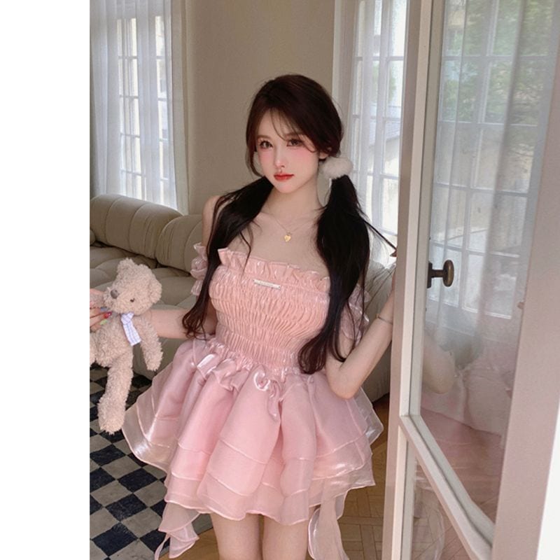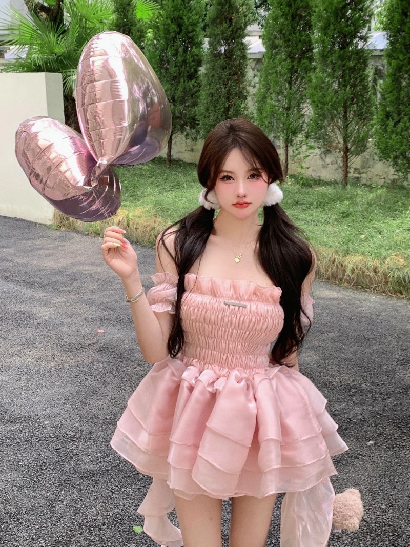 ロリータ ドレス 夏 ピンク ポンポンスカート ケーキのスカート ワンピース コスチューム