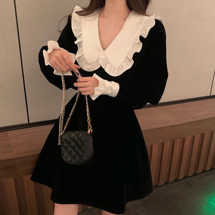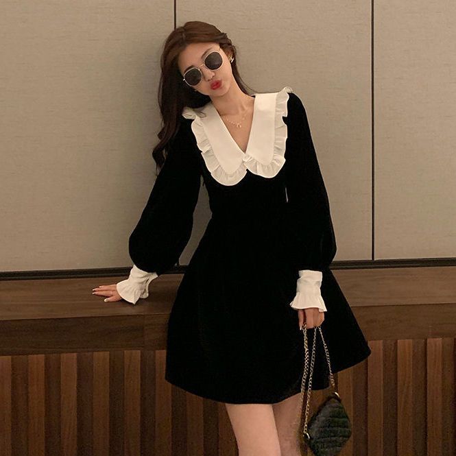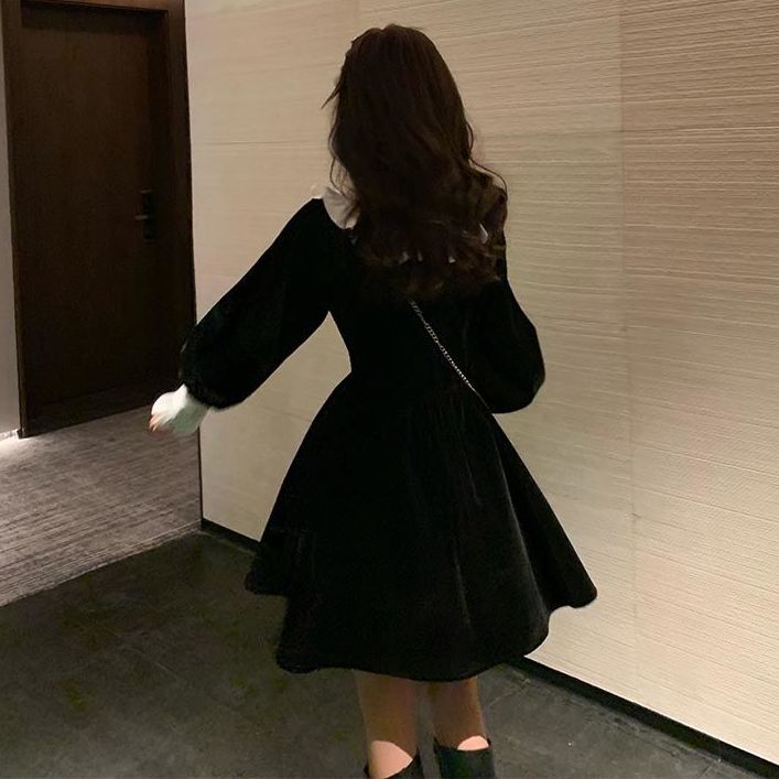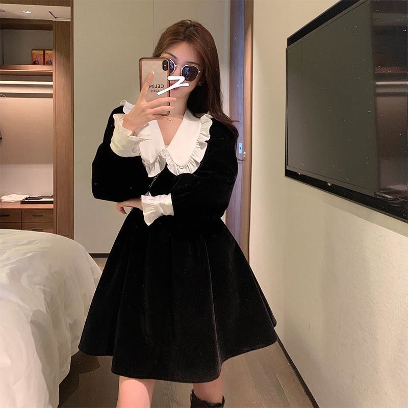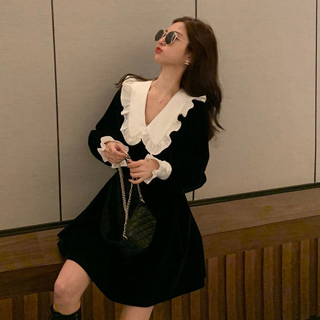 ワンピースレディース ベビーカラー ワンピース 黒スカート シックなドレス 秋 ファッション 百掛け やせて見える その他 ワンピース ドレス