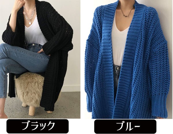 セーター ニット カーディガン ニットカーデ トップス 長袖 春 秋 シンプル 無地 オーバーサイズ ゆるニット ゆったり スリット入り ブルー ブラックdv004s1s1d4