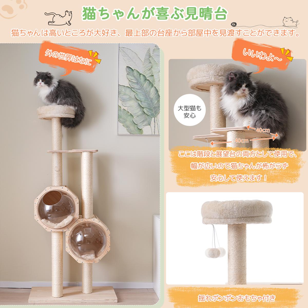 キャットタワー ネコタワー 猫タワー 多頭飼い 高さ152cm 据え置き型 ネコ タワー おしゃれ タワー 大型 可愛い 隠れ家 ポンポンおもちゃ 付き 大型猫 子猫 China Natural
