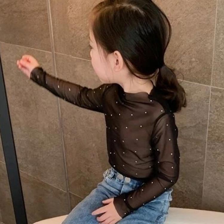 キッズ 冷房対策 シアートップス スパンコール 女の子 レイヤード 2枚セット 薄手 夏 Tシャツ ブラウス