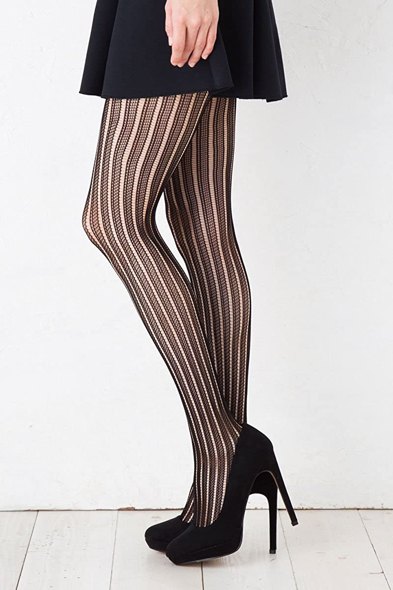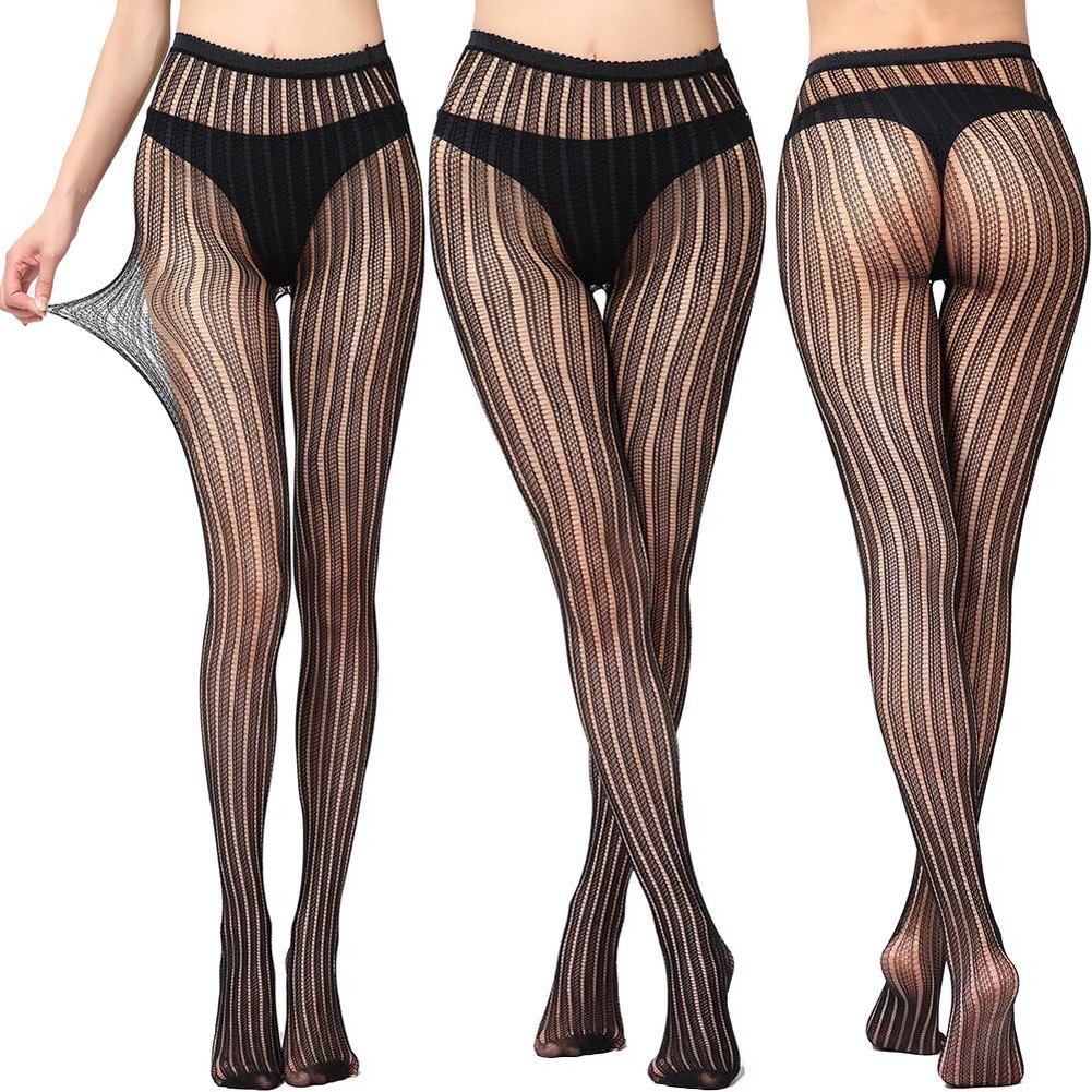 柄ストッキング 網タイツ ストッキング タイツランジェリー 女性 パンスト ブラックストッキング レディース 30デニール フィッシュネット ラッセルレース ハロウィン ブラック ストライプ柄