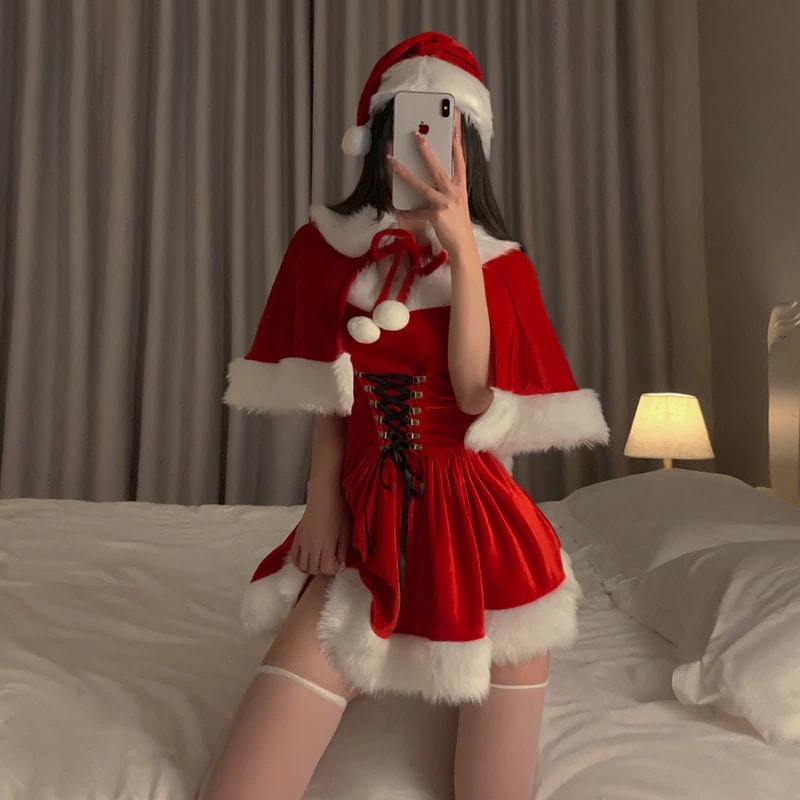 コスプレ レディース 可愛い サンタコス 帽子 ケープ付き 2way クリスマス サンタクロース 仮装 コスチューム 大きいサイズ 演出服 イベント パーティー 舞台 新年会 文