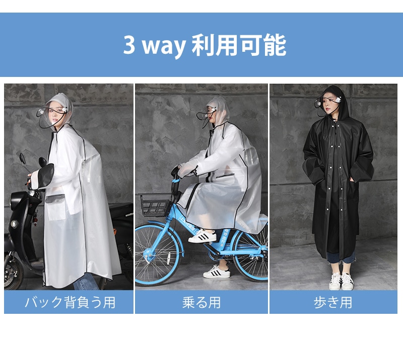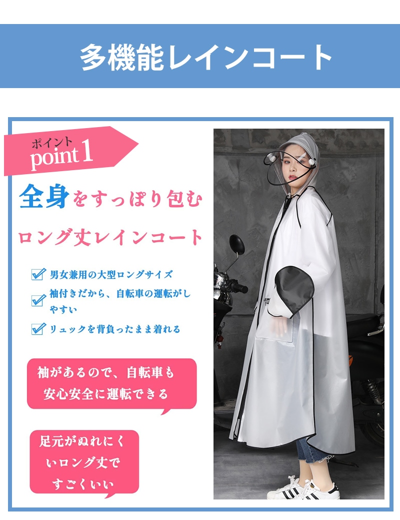 レインコート 男女兼用 ロング丈 自転車 通学 通勤 リュック 保育園 レインポンチョ 二重ツバ アウトドア キャンプ 防災 バイク 野外フェスレインコート 安全ロング丈 ク