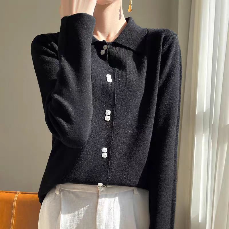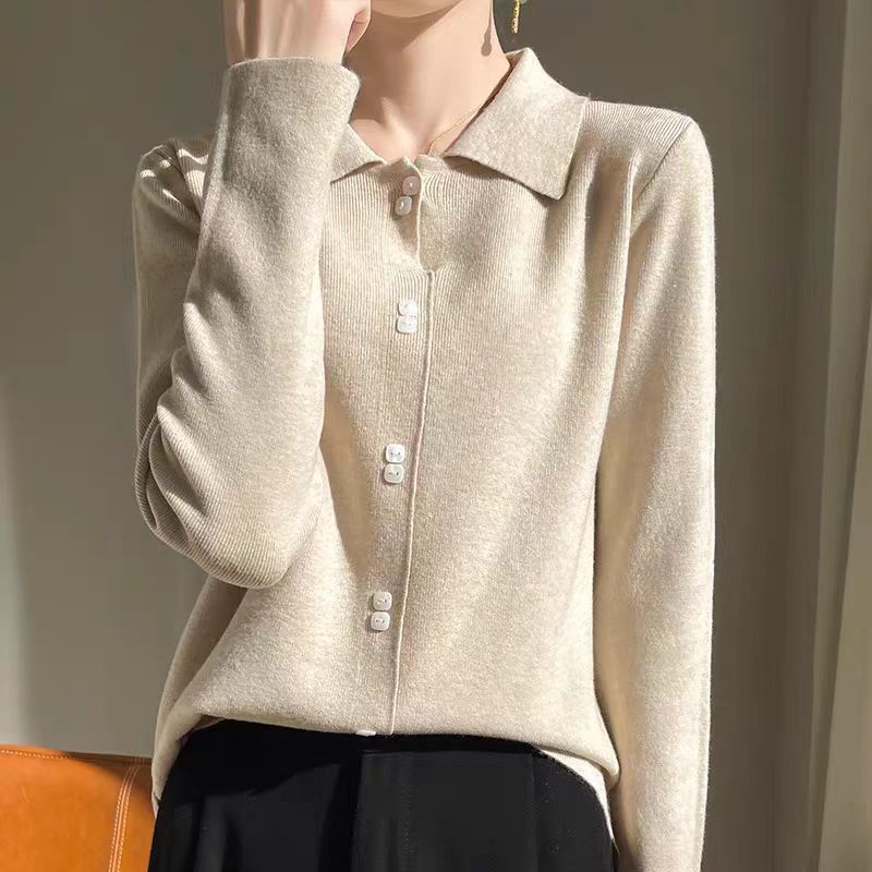 2024新作韓国ファッション秋冬ニット着るだけモテニット 女性服セーター ハイカラー大サイズ無地厚手シャツルーズレイジーウーセーター ニット