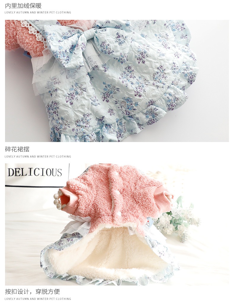 2色春秋冬の新金新品犬の服かわいい猫のバブルスリーブロリータお姫様リボン本ワンピース新生ミルク犬のミルク猫の子犬マシュマロ小型犬ペットテディ服CXDZ
