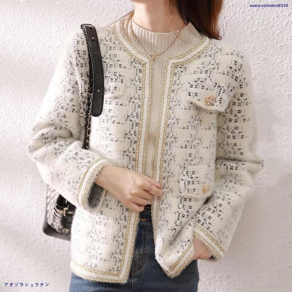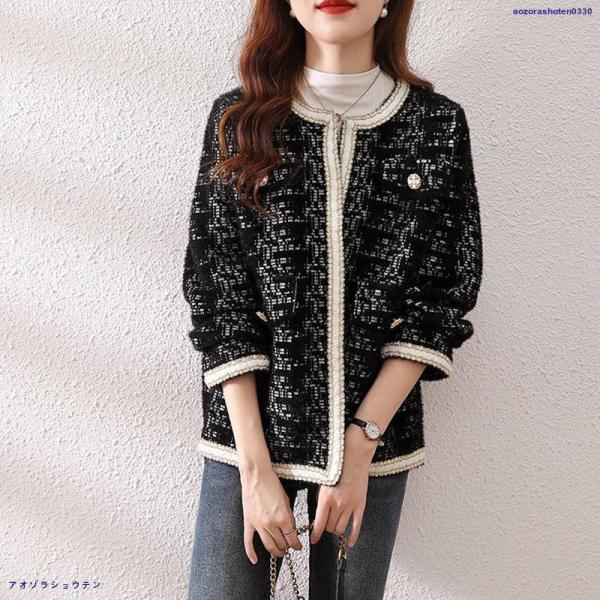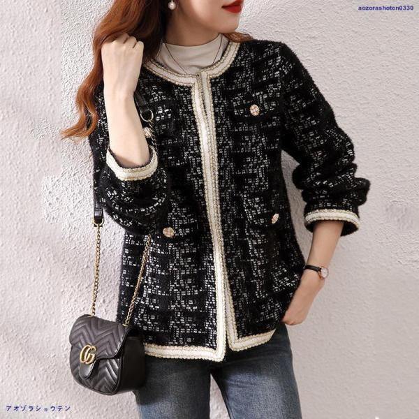 人気沸騰 ブレザージャケット レディース ノーカラージャケット フォーマル ツイード 長袖 ニット アウター 韓国風 春 秋 冬 オフィス カジュアル 入学式 卒園式 卒業式