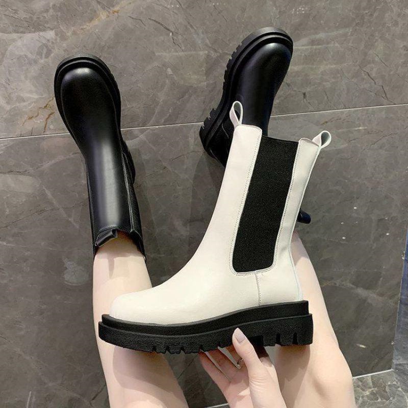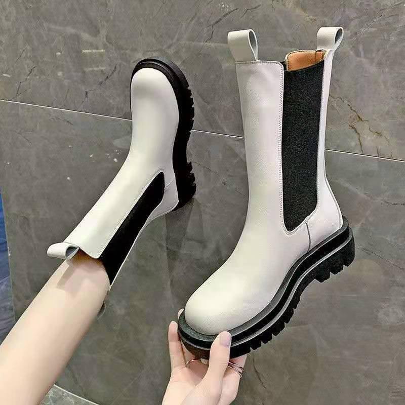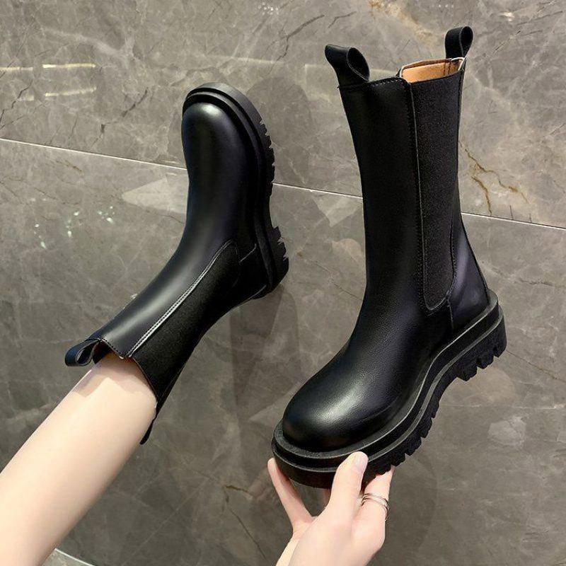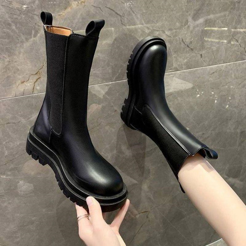万能流行感 サイドゴアロングブーツ レディース ブーツ サイドゴア 厚底 ロング丈 おしゃれ PU シンプル 美脚 おしゃれ 歩きやすい 履きやすい
