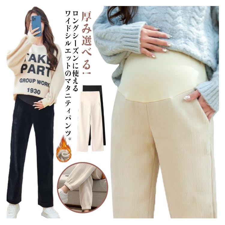 品質いいな新品 マタニティ パンツ 裏起毛 リブ マタニティパンツ 冬 高見え マタニティウエア ロングパンツ マタニティ用 オフィス フォーマル ワイドパンツ