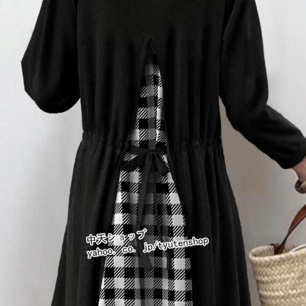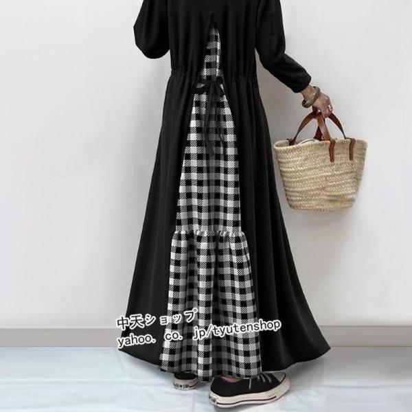 人気沸騰 春ドッキングワンピース長袖 レディース 夏秋 ロングワンピース マキシワンピース 秋服 カジュアルワンピース チェック柄 vネック 大人 気質