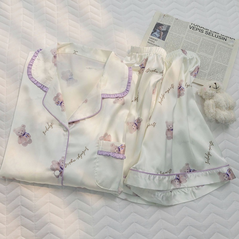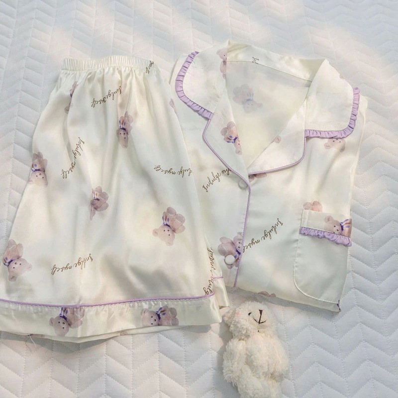 ウェアパジャマ 韓国大人気 カーディガンパジャマレディース新型ins風かわいい小熊半袖半ズボン外着部屋着セット 母の日 パジャマ