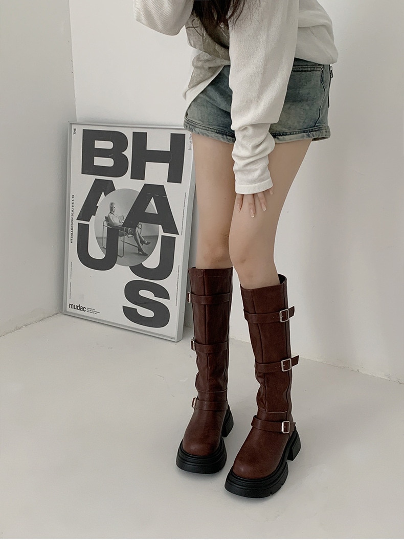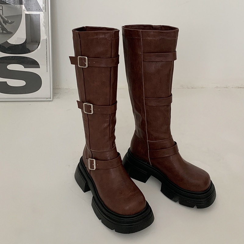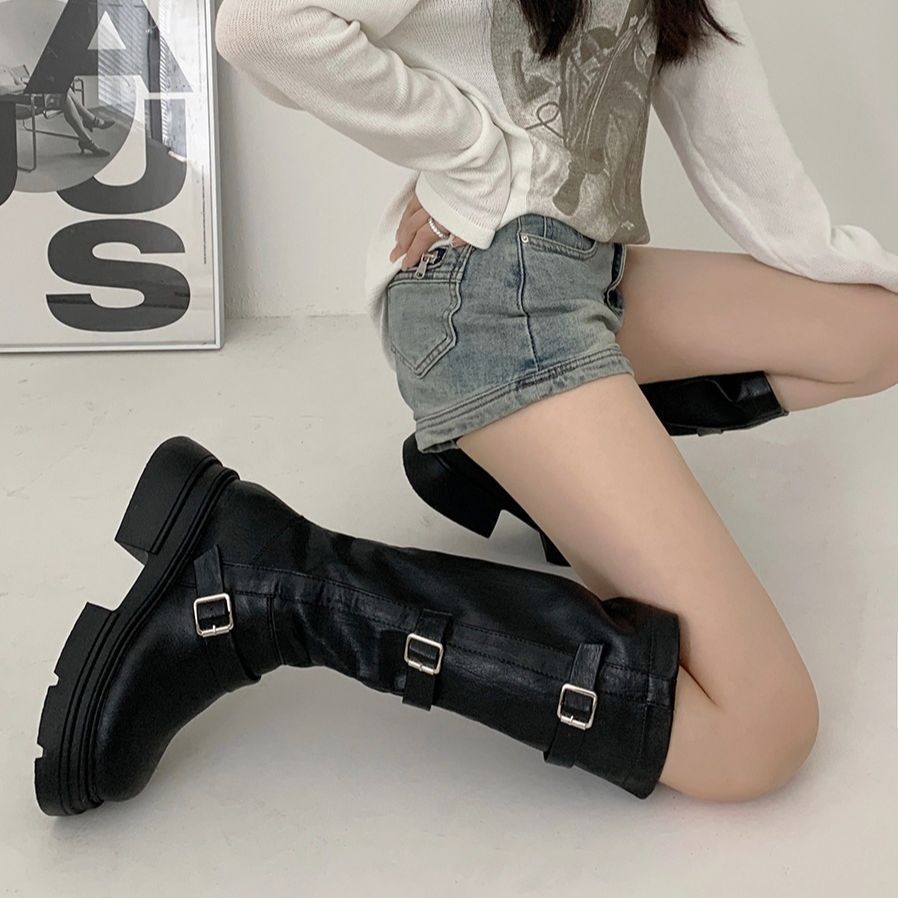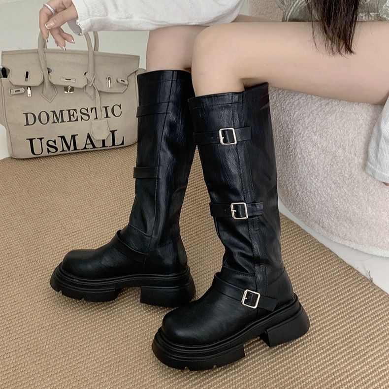 フランス 厚底 復古 長靴 女 2023新型 ひざを曲げない やせて見える 太いかかと ウエスタンナイトブーツ ブーティー
