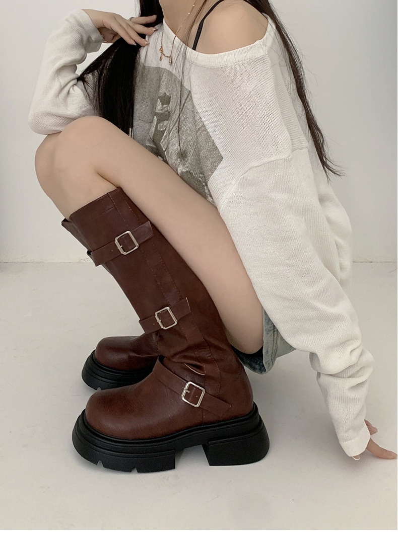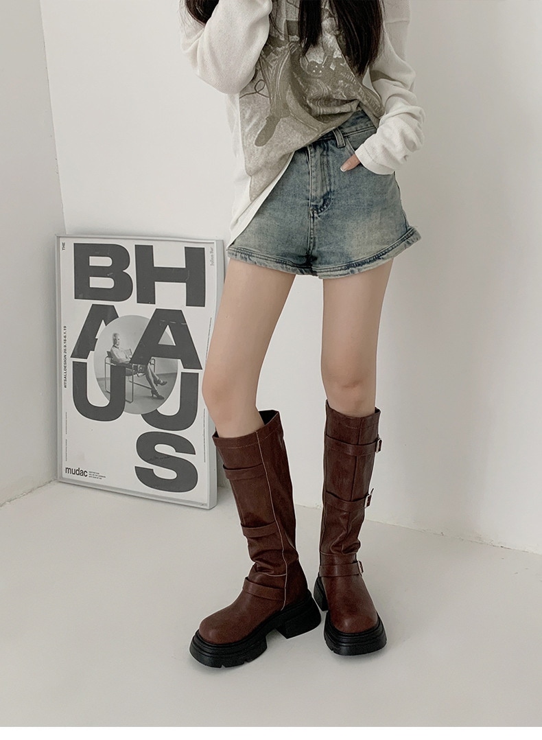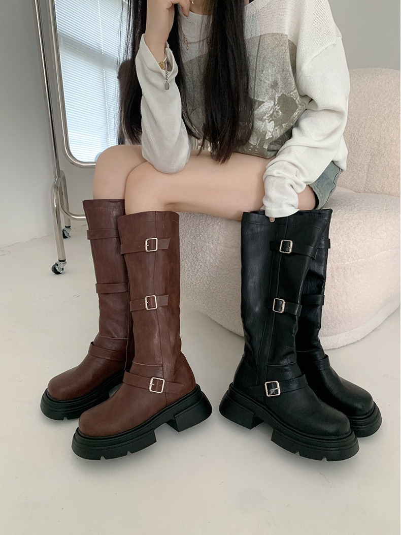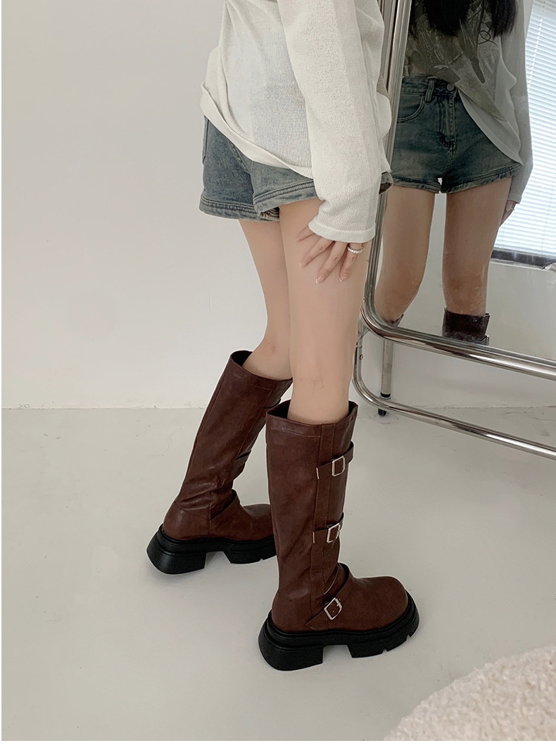 フランス 厚底 復古 長靴 女 2023新型 ひざを曲げない やせて見える 太いかかと ウエスタンナイトブーツ ブーティー