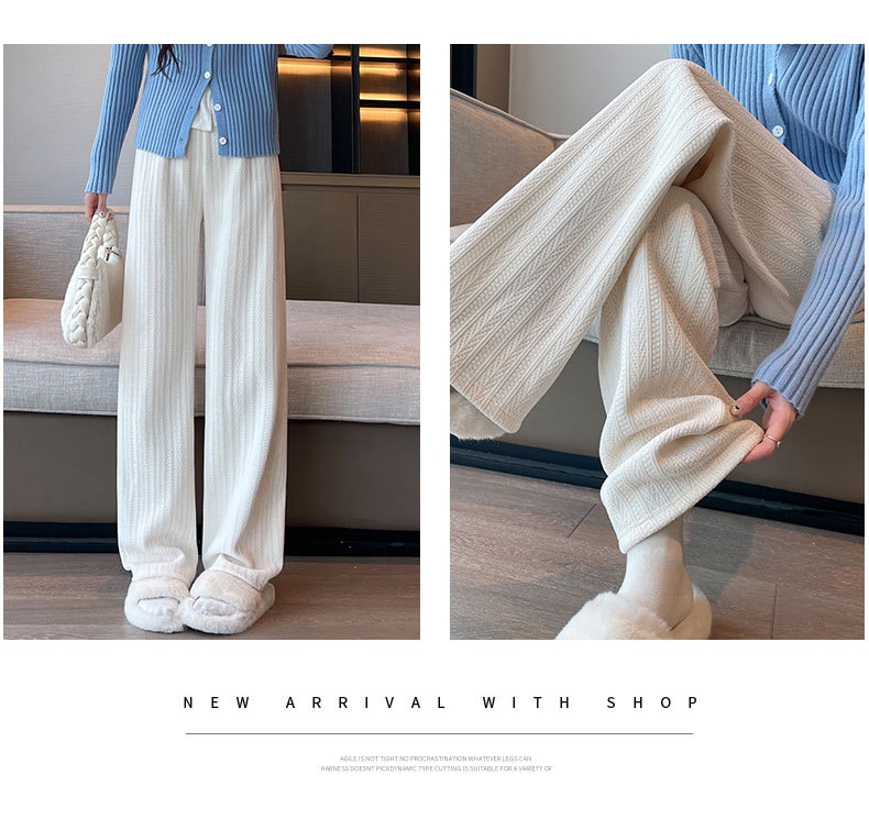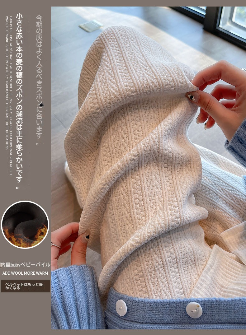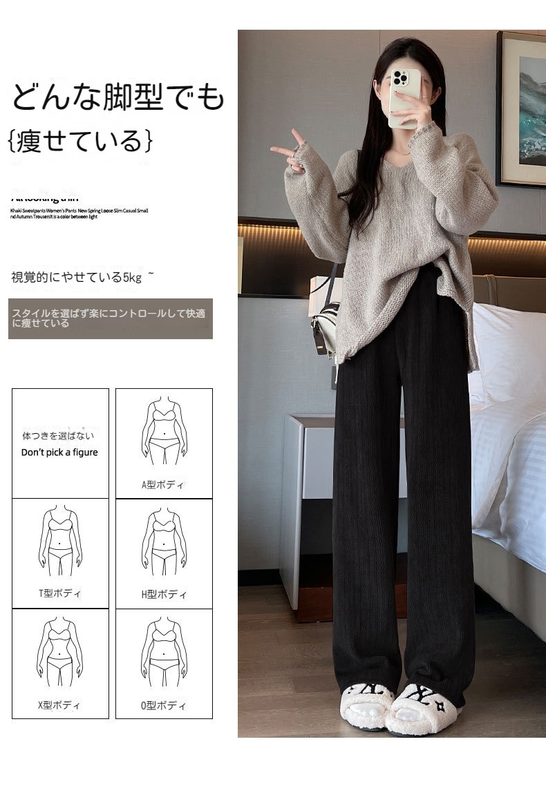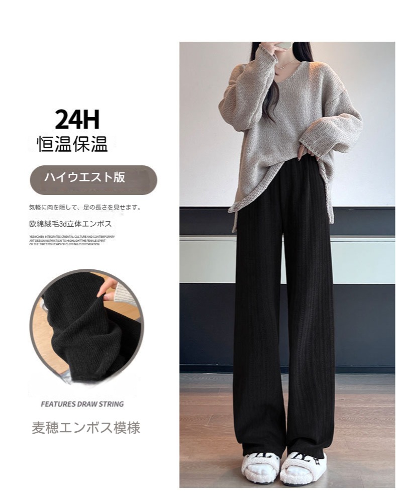 裏起毛パンツ麦穂雪尼爾広脚ズボン女子秋冬高腰直筒加毛厚ニットカジュアルズボンコーデュロイズボン ロングパンツ
