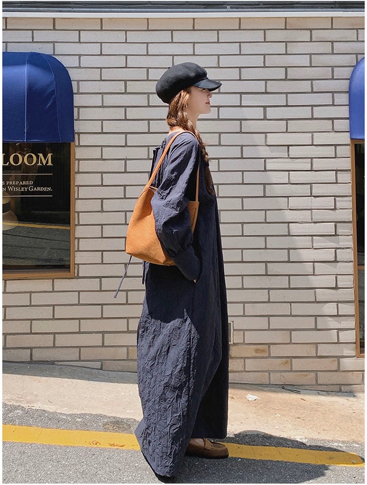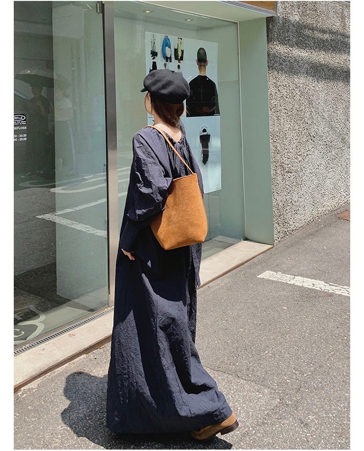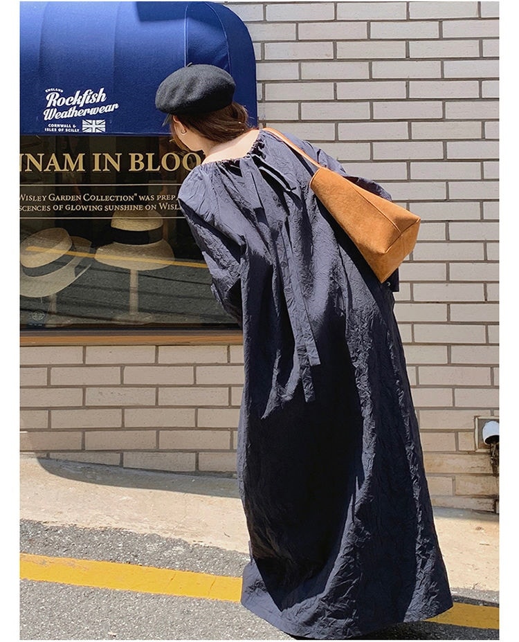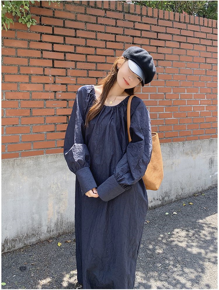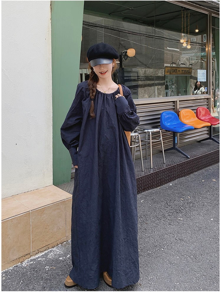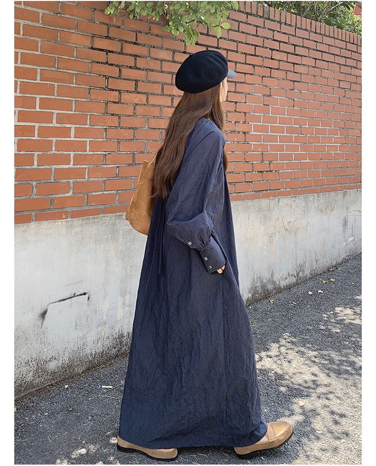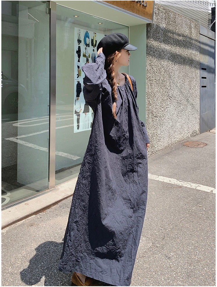 レデイース服ワンピースロング長袖マキシワンピース2024秋新品ゆったりオーバーサイズロング丈ブルーM-4XL春秋 長袖ロング マキシ丈ワンピ