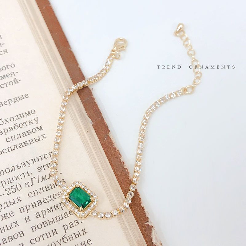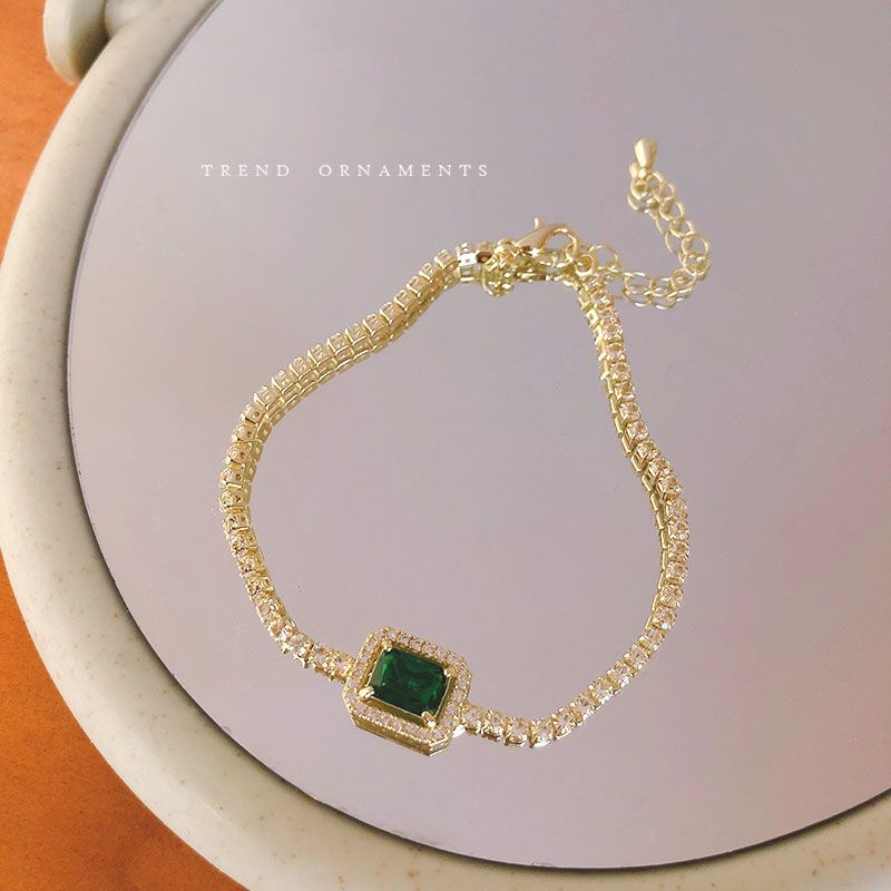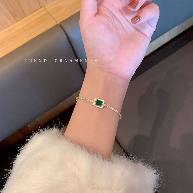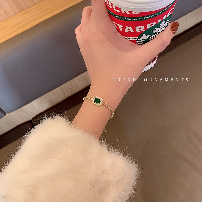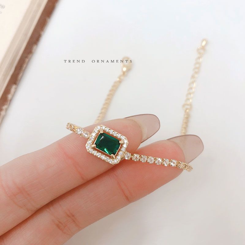 バングル フルダイヤモンドグリーンジルコニアブレスレット女性韓国のハンドジュエリー ブレスレット
