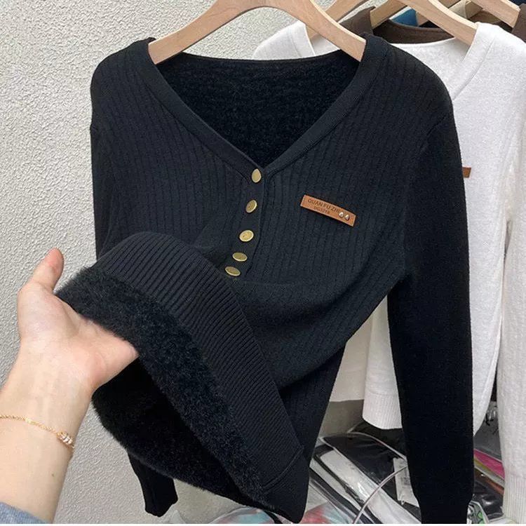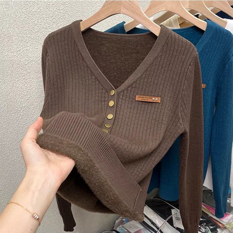 人気なリプニット 裹起毛 暖かいニットインナー Vネック 着痩せ 大きいサイズ セーター レディース 韓国ファッション ベーシックニットトップス カシミヤタッチ ニットセーター