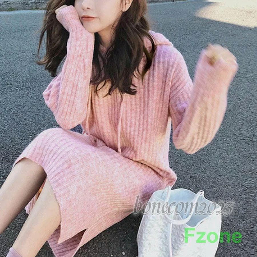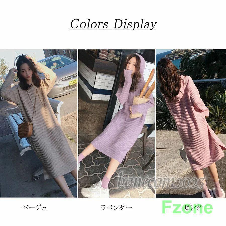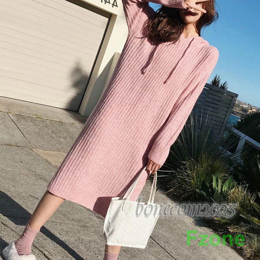 ニットワンピース レディース 秋冬 ワンピース ミモレ丈 パーカー ロングワンピ ス トレッチ ミディアム 長袖 フレア キレイめ 可愛い ゆったり カジュアル 通