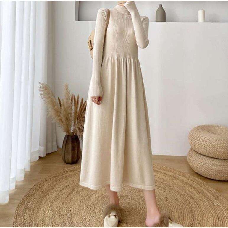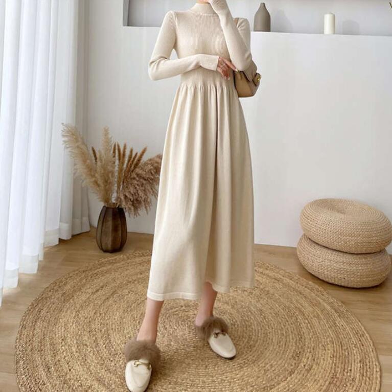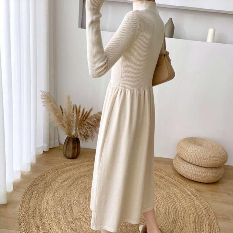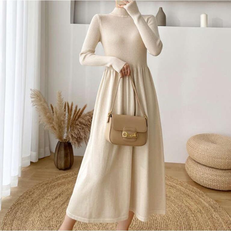 ニットワンピース レディース ワンピース ニット ワンピ リブ リブニット 秋冬 きれいめ ニットワンピ 大人 長袖 ロング ハイネック ニットワンピ