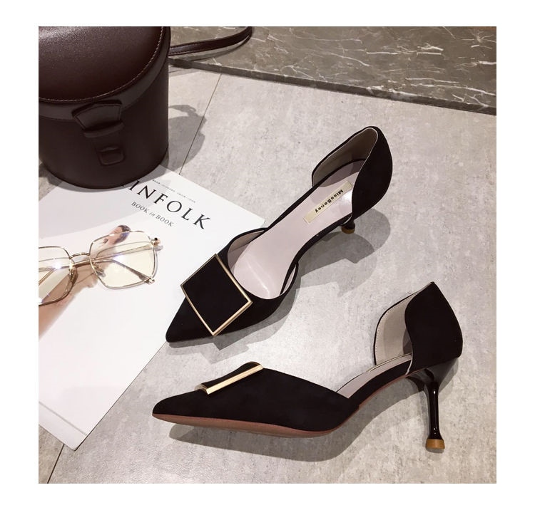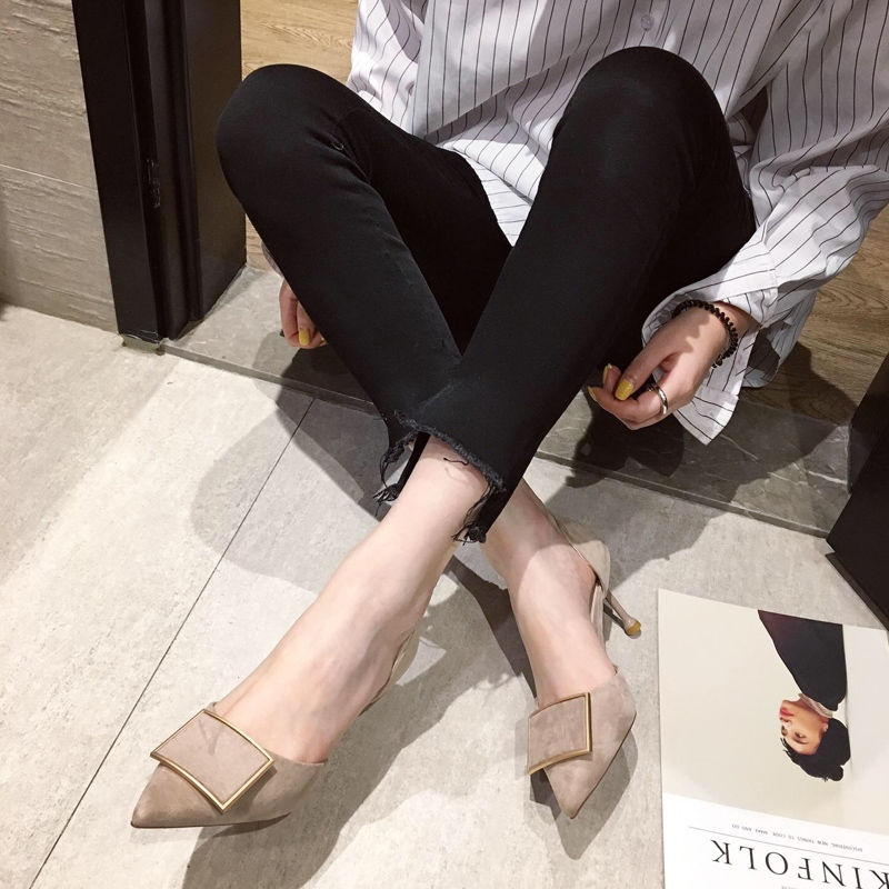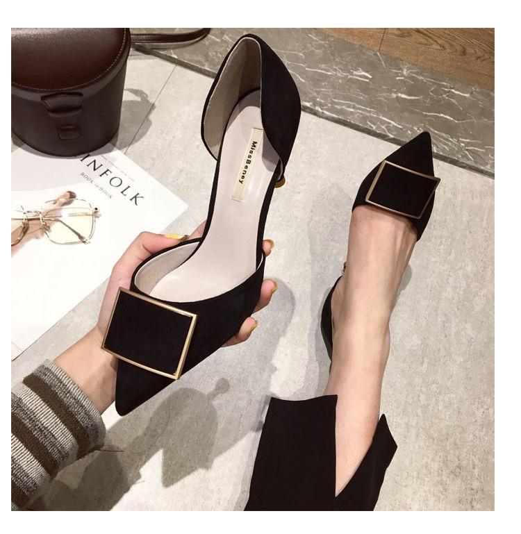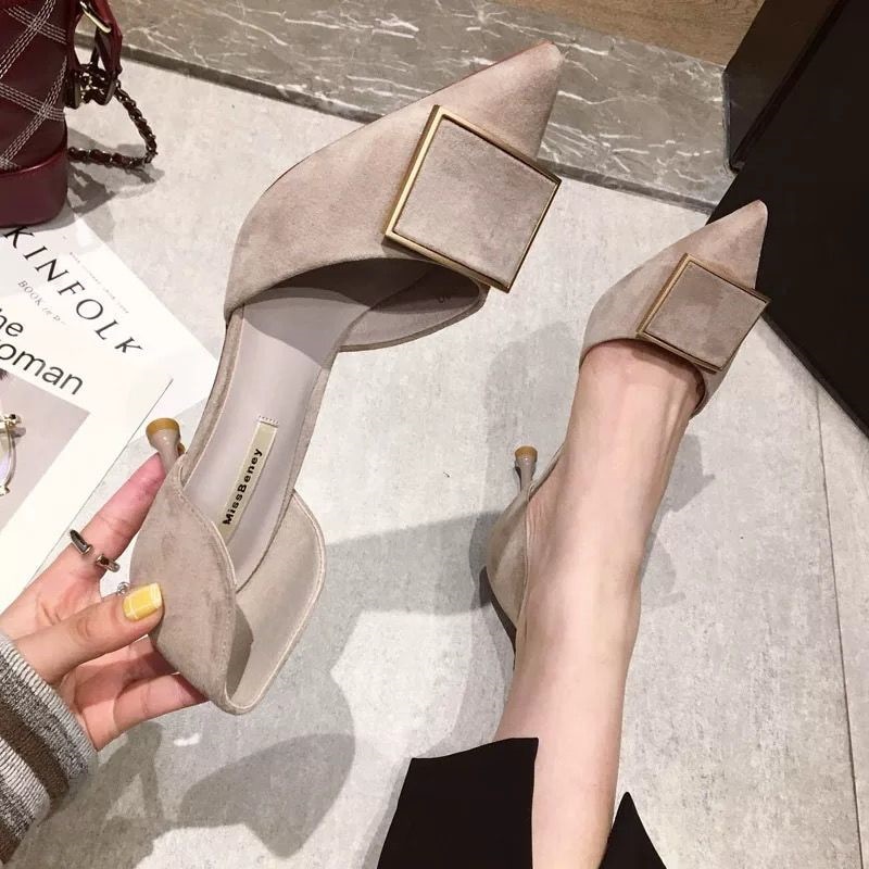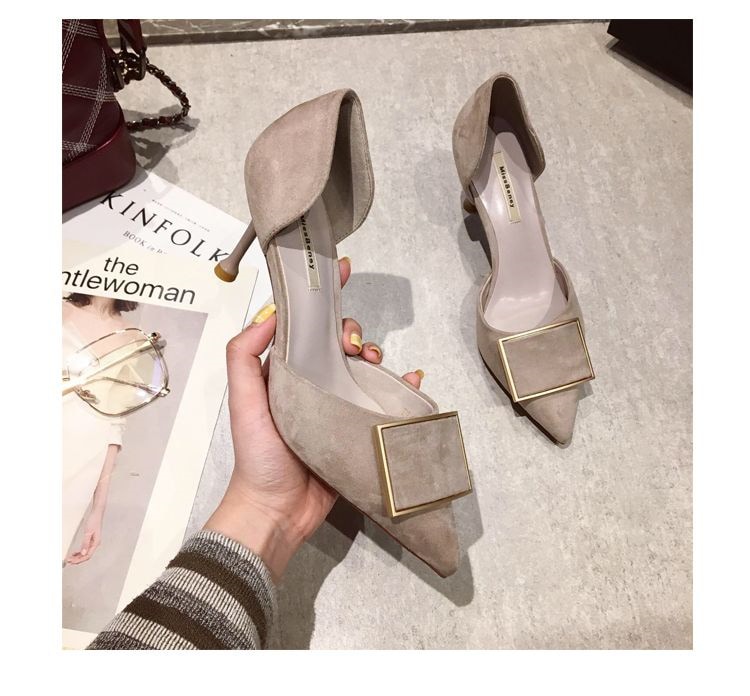 ヒールパンプス レディース 2024夏新型 スクエアボタン ファッション ハイヒールセクシー 細ヒール尖った浅口 中空 シングル シューズ 通勤 韓国
