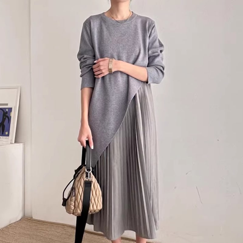 秋冬 新作 気質 シンプル ニットワンピース ロングワンピース 着痩せ 百掛け 切り替え ワンピース 冬 ニットワンピ