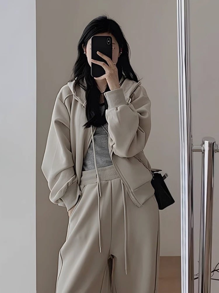 2点セット トップス+ズボン パーカー スウェット ア ップ 長袖フード付きアウター無地 スウェットパンツ韓国ファッション レディース