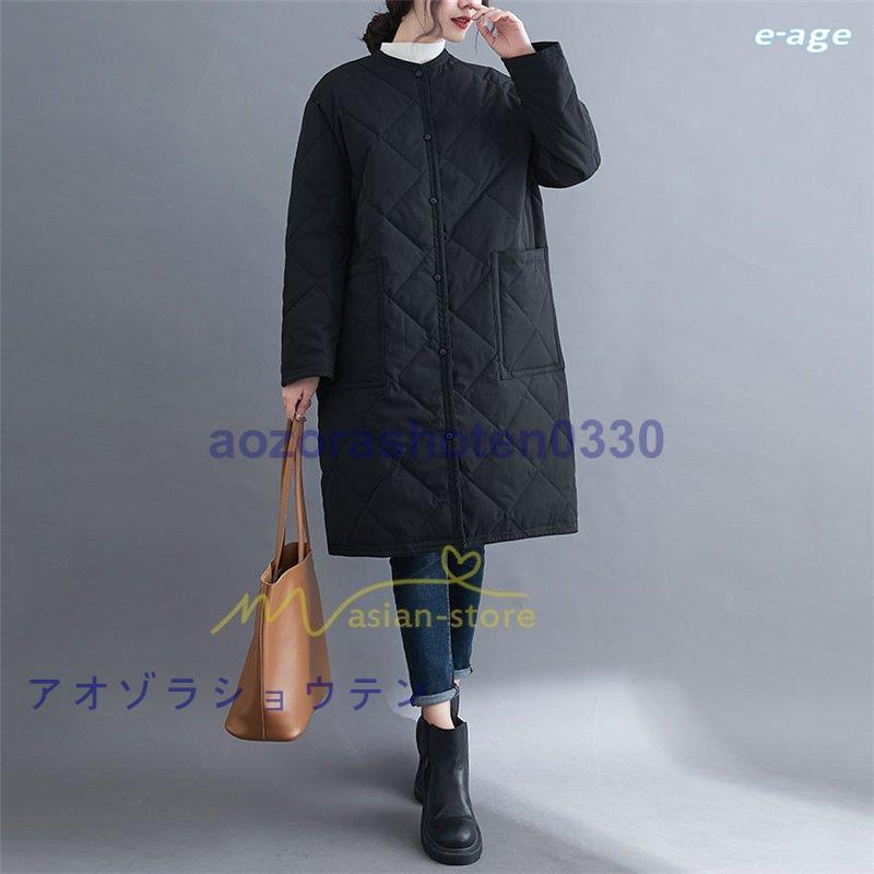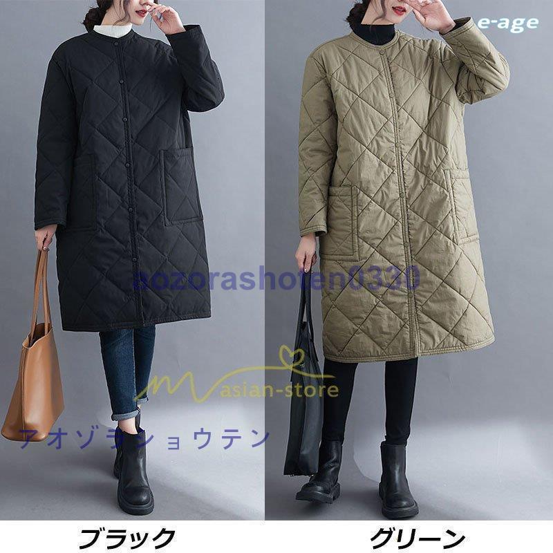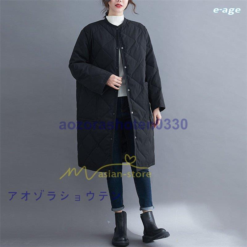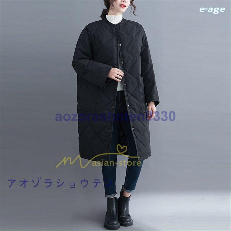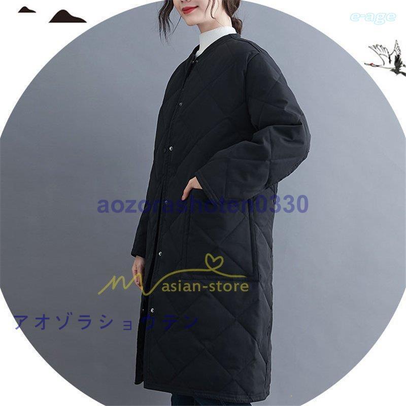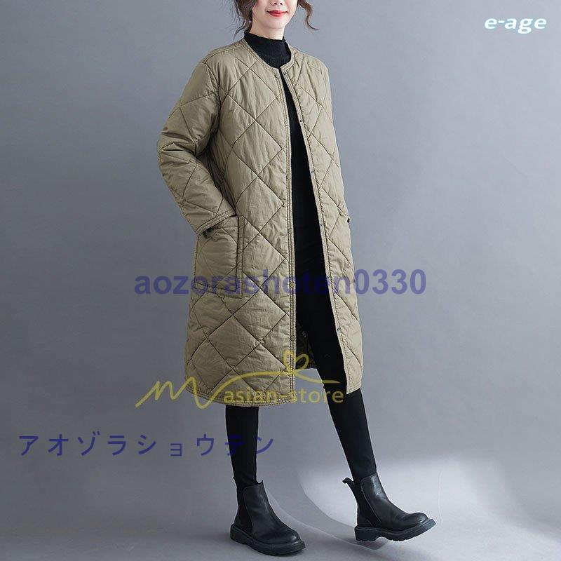 超目玉新品 ロングコート レディース キルト キルティング ロング丈 長袖 ラウンドネック ノーカラー カーディガン 20代30代40代50代 ママ 通勤通学 ゆったり 上品