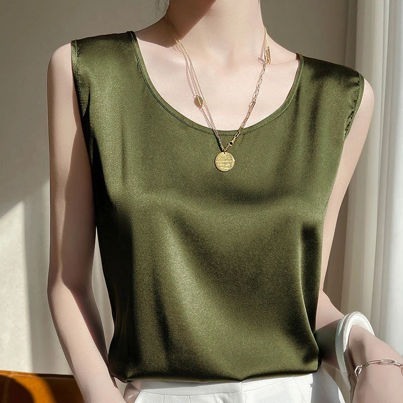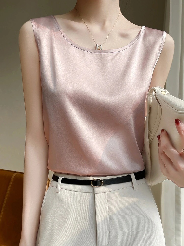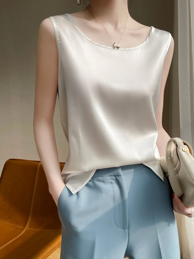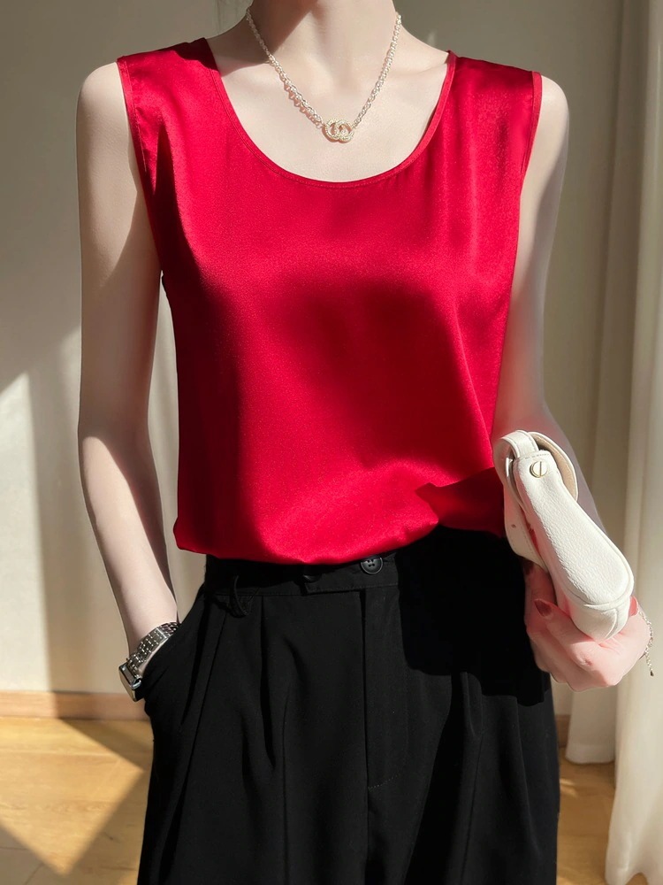 キャミソール 2024春夏 新作 百掛け ゆるい 大きい タンクトップ シルク トップス キャミソール