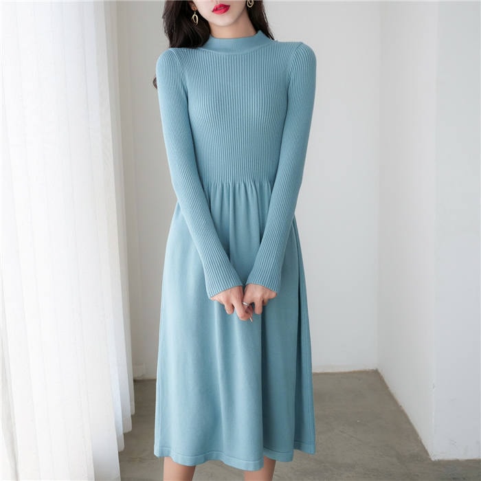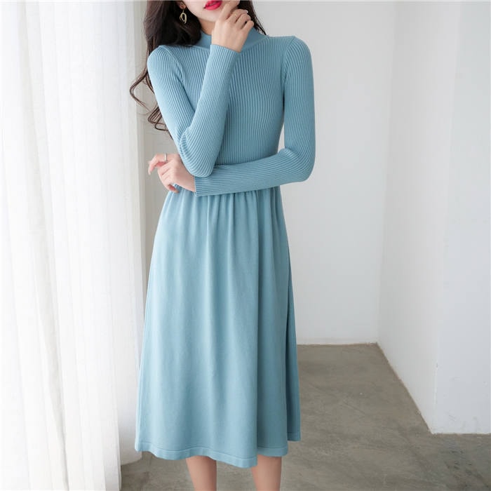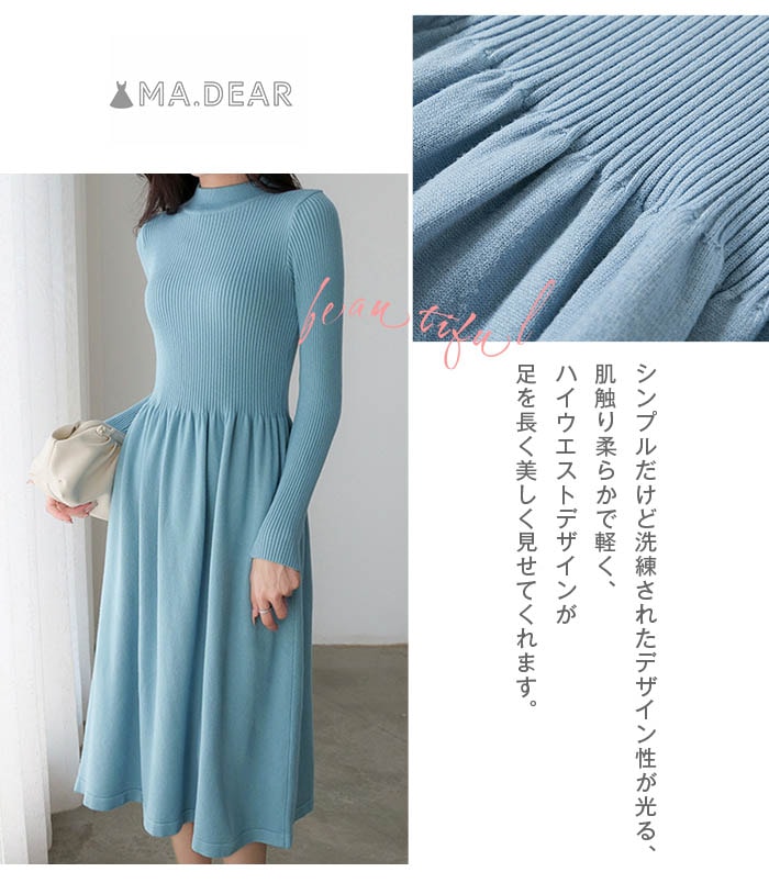 ニットワンピース 冬 ハイネック ワンピース 膝丈 秋冬 ワンピース 長袖 ワンピース きれいめ ハイウエスト ニット ニットワンピー aライン 大人 春 フレア 上品 大人カジュアル リブニ