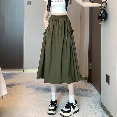 2024 日系 新作4locor おしゃれ カジュアル 百掛け スカート レトロ ハイウエスト 無地 マキシスカート マキシスカート プリーツスカート ロングスカートスカートドレスお呼ばれドレス